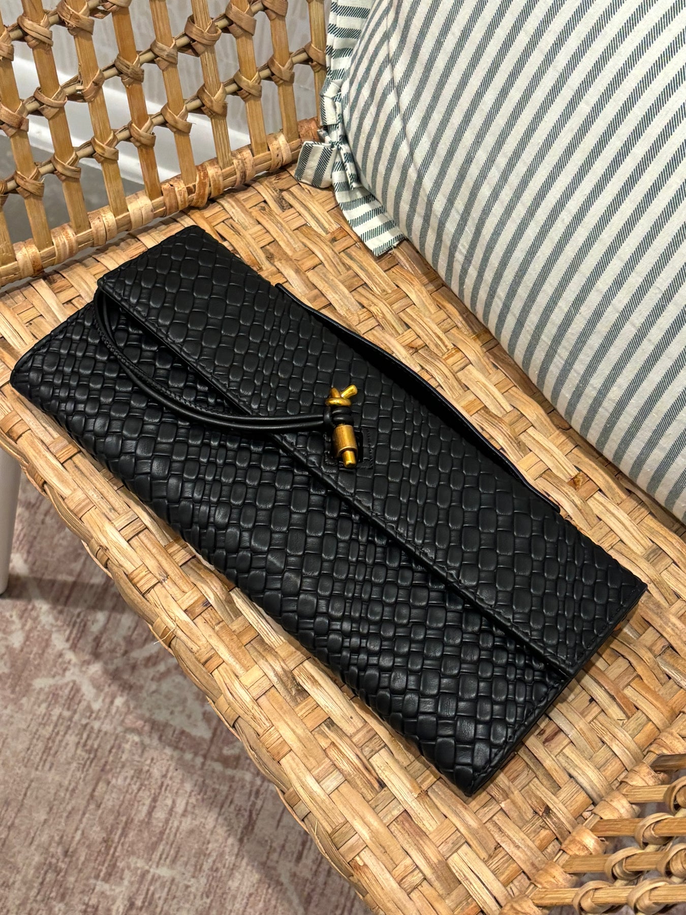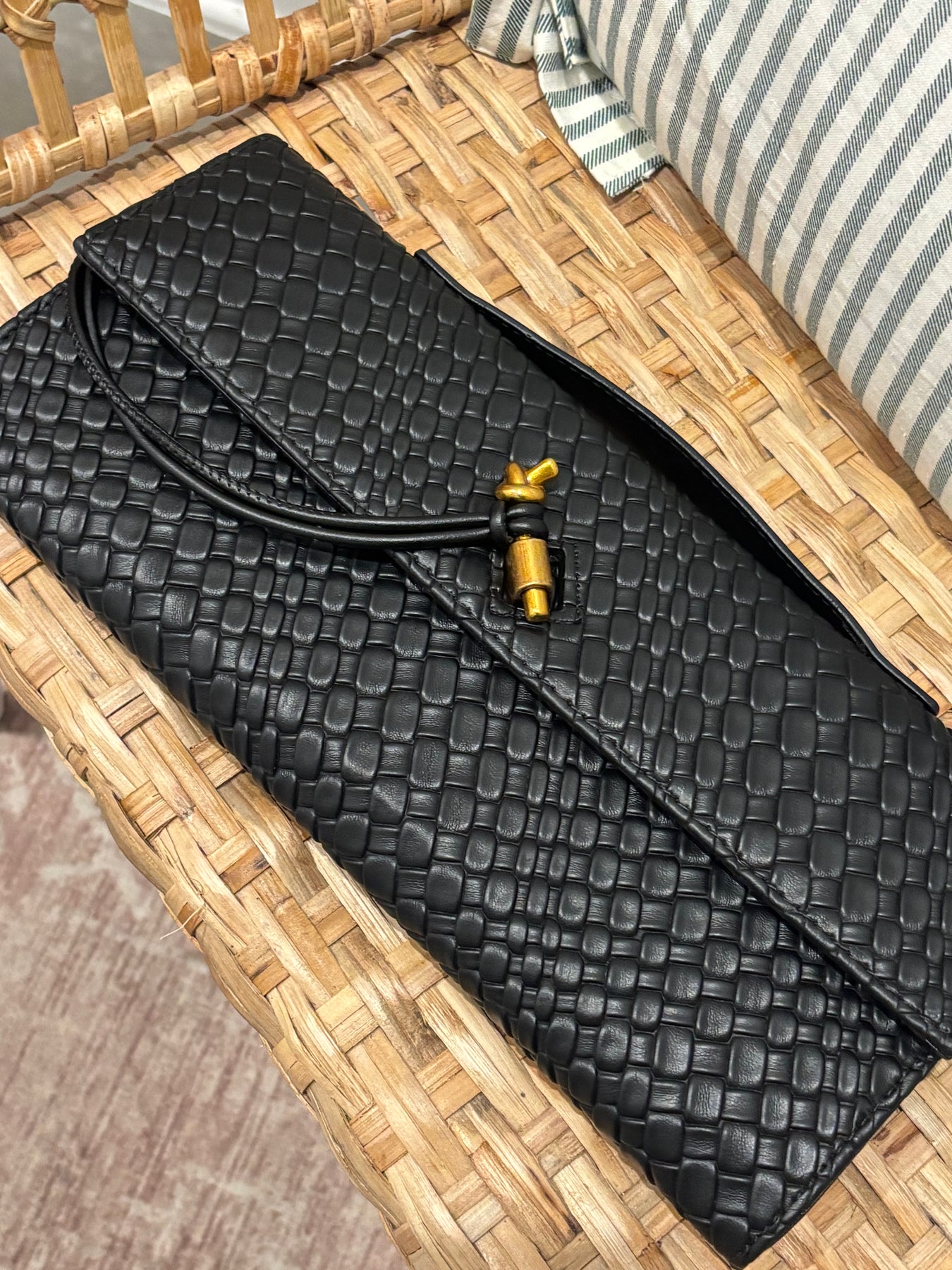 • Embossed Weave Knot Clutch Shoulder Bag