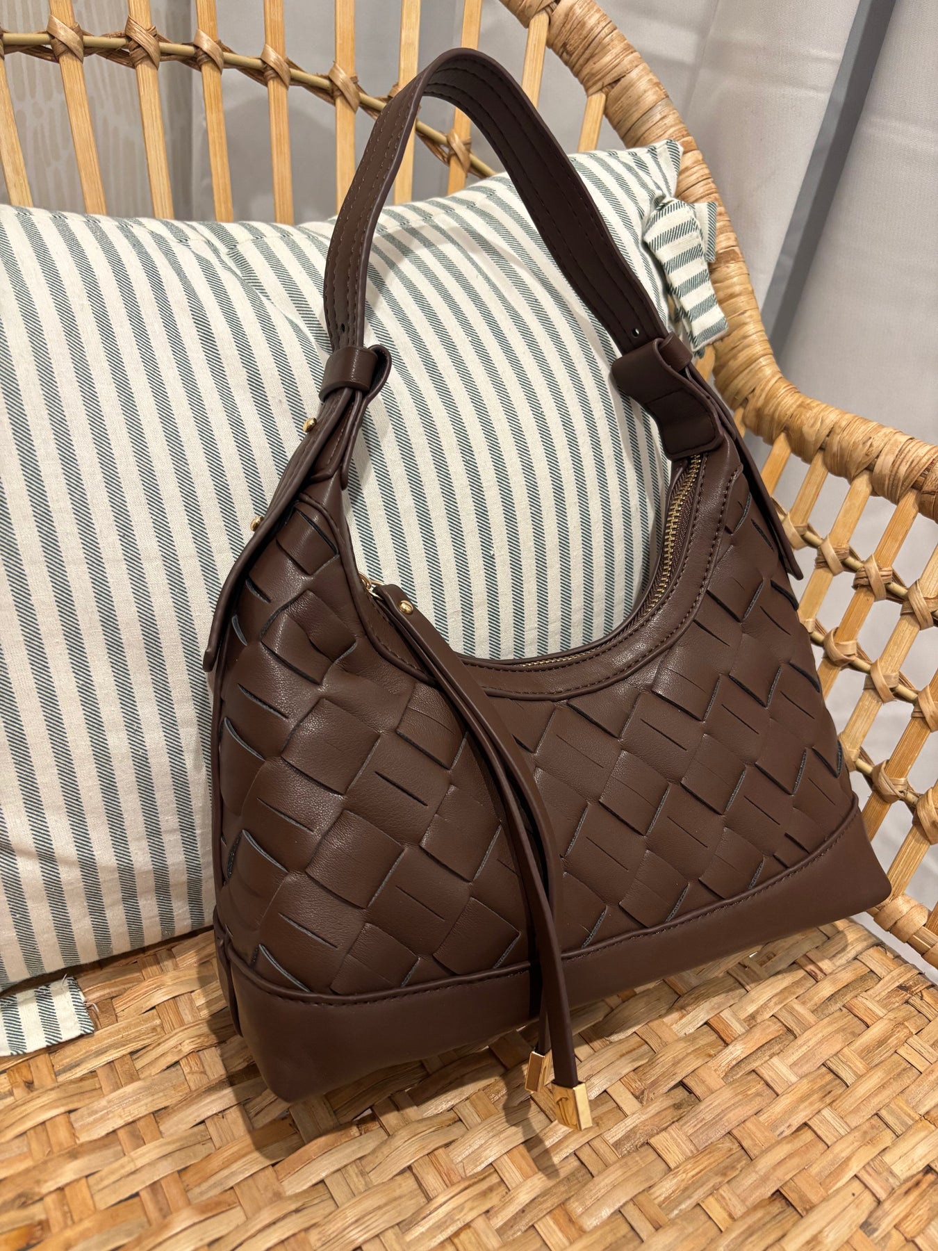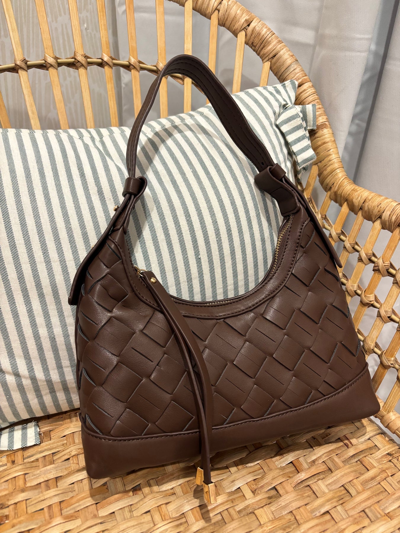 • Woven Shoulder Hobo Bag
