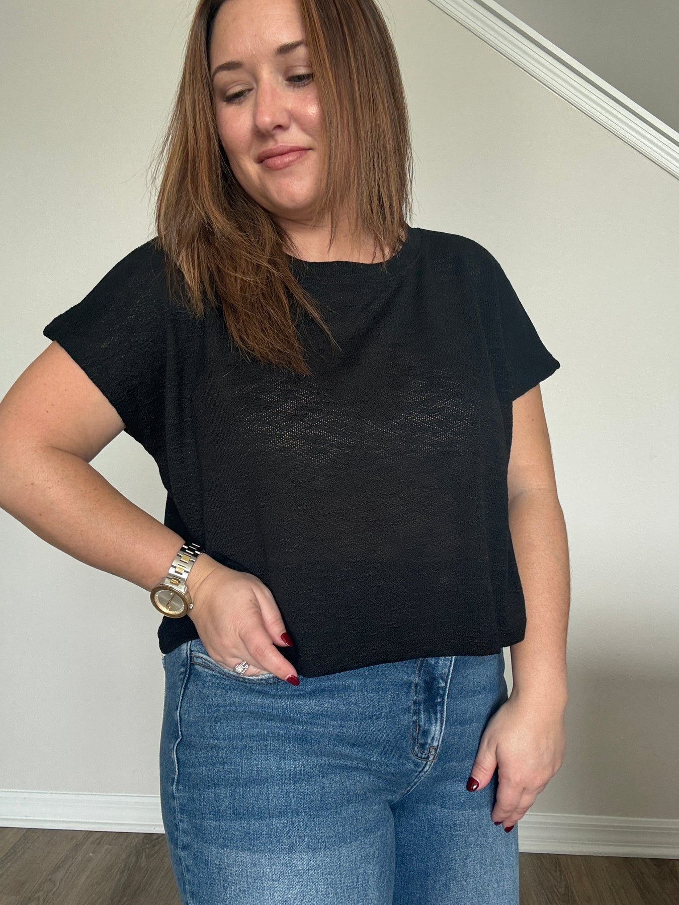 Elevate your casual wardrobe with this round neck slub hacci cropped top, a soft and breathable essential that blends comfort with contemporary style. Crafted from lightweight slub hacci fabric, this cropped top features a classic round neckline and relaxed fit, making it perfect for layering or wearing on its own for effortless, everyday looks.