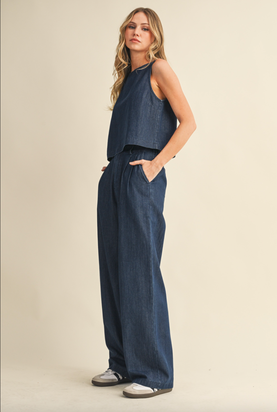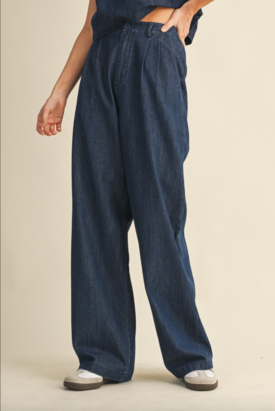 Say hello to the denim trouser you’ll want in every wash. These pants blend the structure of your favorite denim with the easy, elevated feel of a tailored trouser. The relaxed leg and flattering fit make them perfect for workdays, casual outings, and everything in between. Dress them up with a pretty blouse or keep it classic with a simple tee either way, they bring effortless style to your everyday lineup.