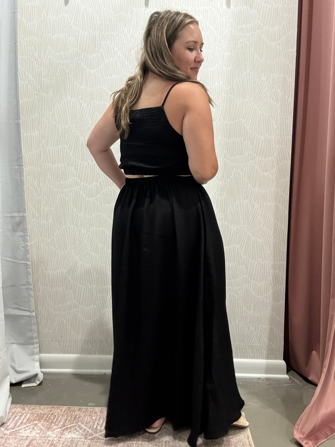 Classic and comfortable, this high waist midi skirt is a timeless wardrobe staple. The elastic waistband offers an easy, flexible fit while the flowy silhouette moves beautifully with you.