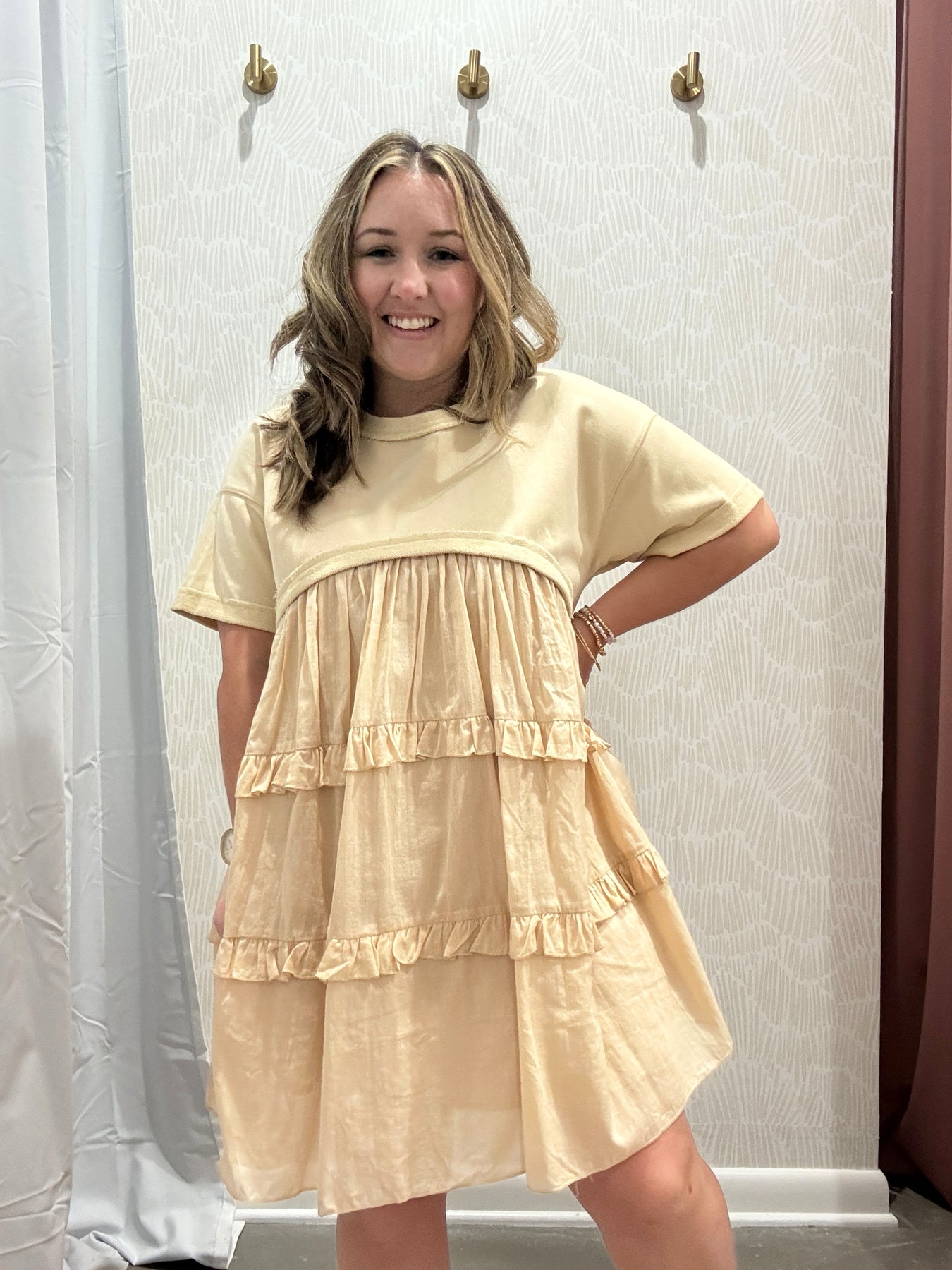 Sweet, flirty, and effortlessly comfortable, this short sleeve ruffle layered babydoll dress is a wardrobe favorite for warm days and easy styling. The layered ruffle design adds playful movement, while the relaxed babydoll silhouette ensures a flattering, breezy fit.