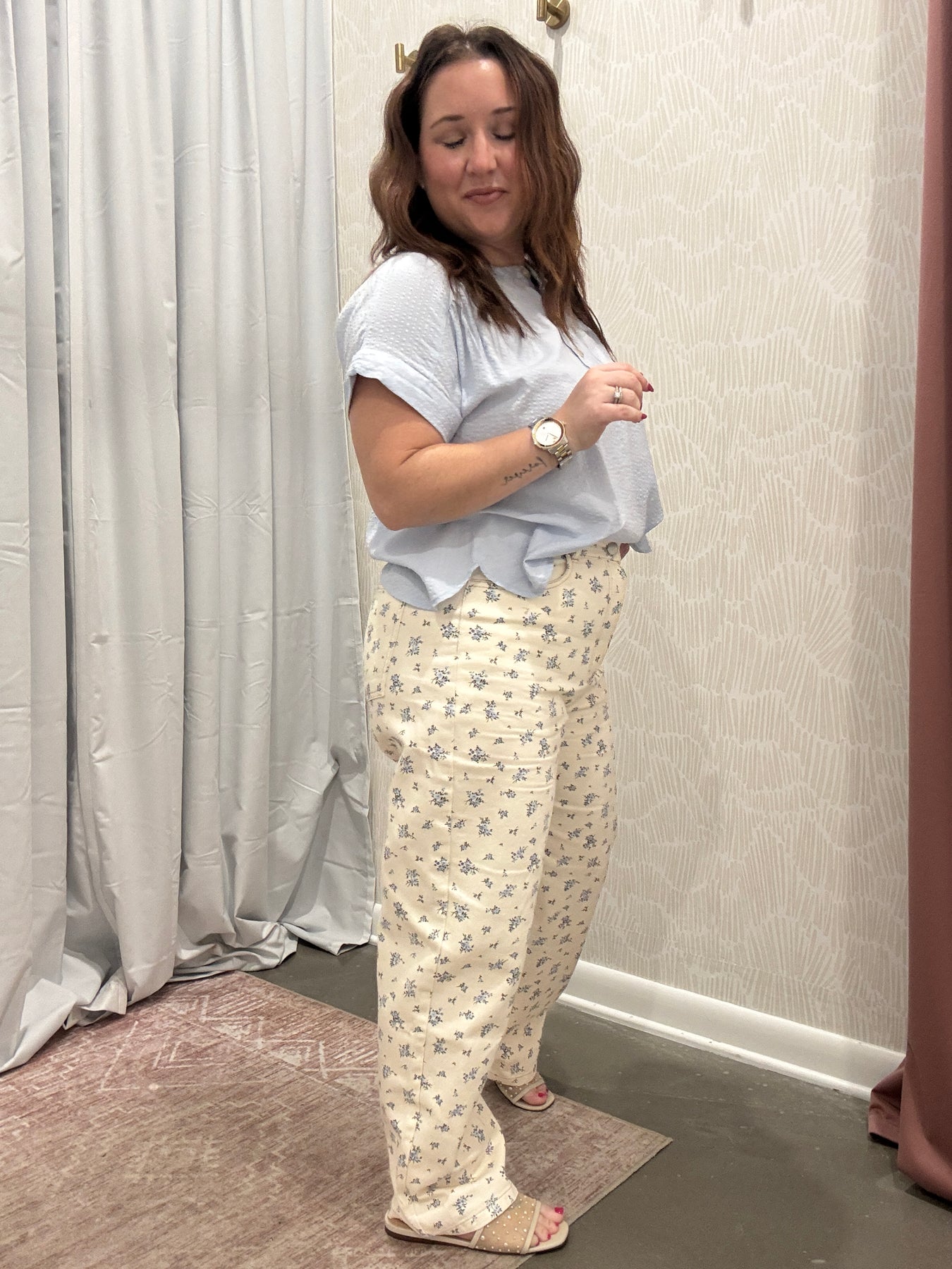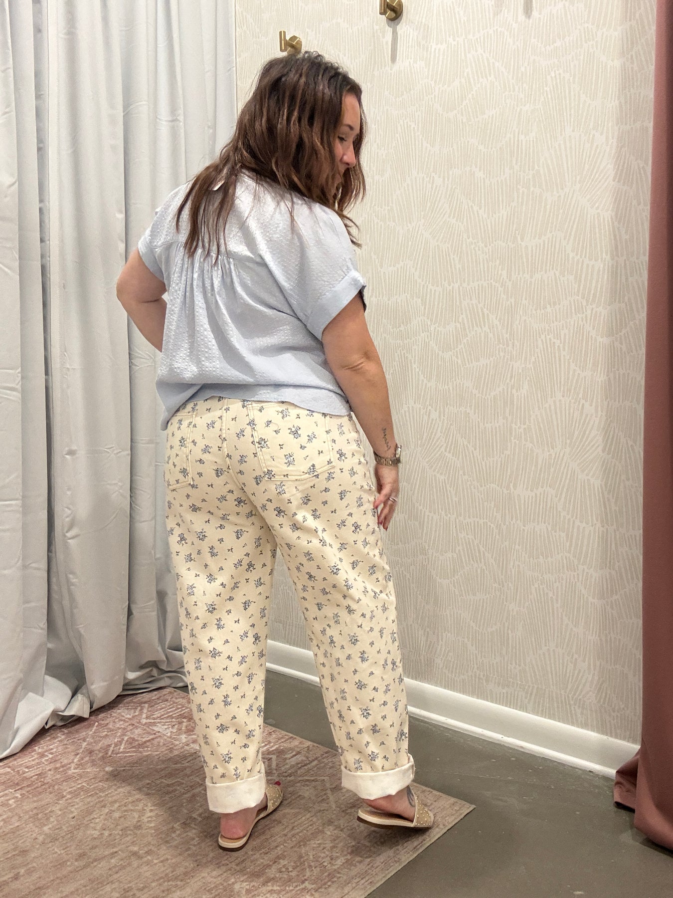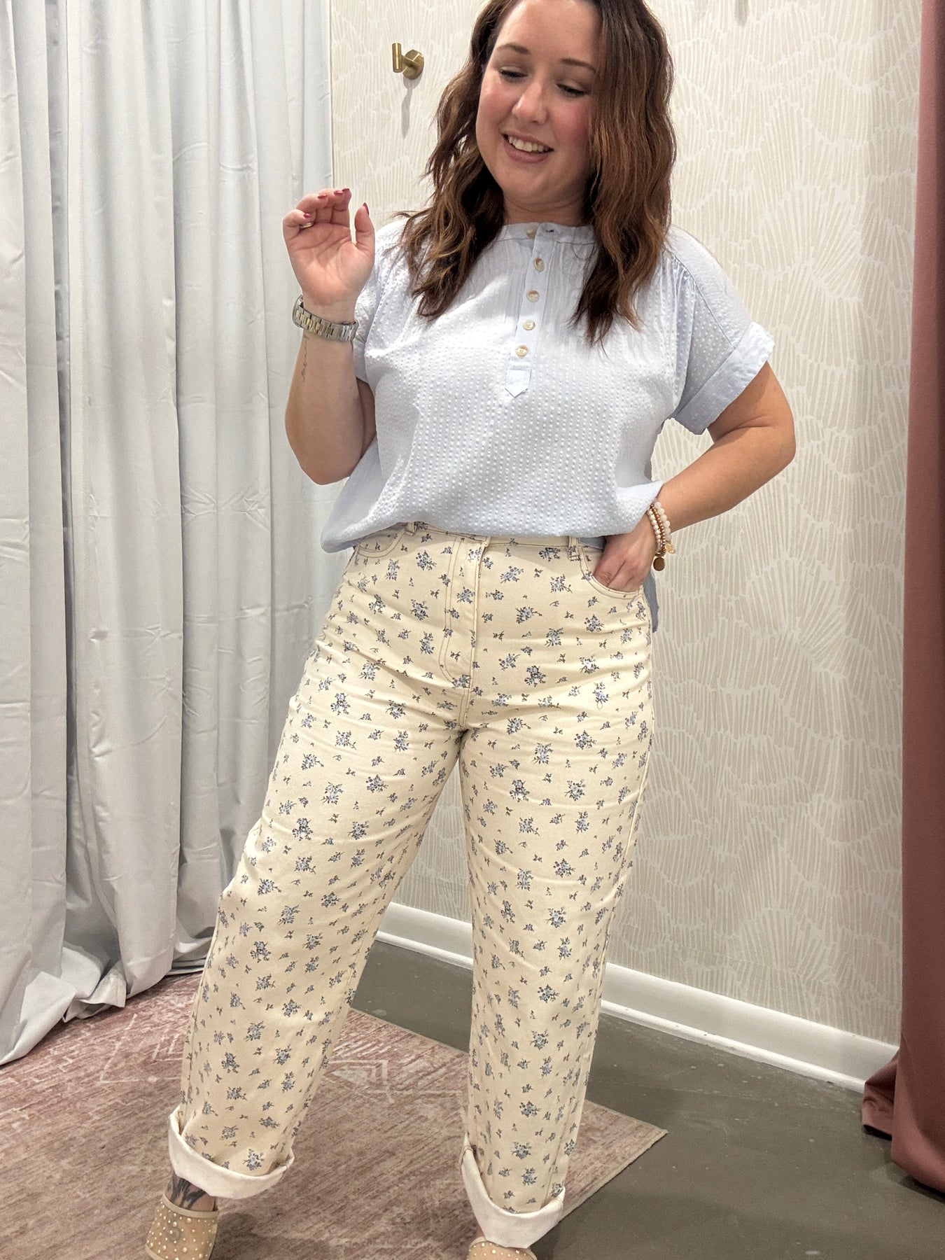 Step into casual-chic comfort with our Floral Ecru Denim Pattern Jeans. Crafted from soft, high-quality denim, these jeans feature a subtle yet eye-catching floral pattern on a versatile ecru background, making them perfect for transitioning from season to season. The flattering fit hugs your curves while providing all-day comfort, whether you’re running errands, meeting friends for coffee, or dressing up for a casual night out.