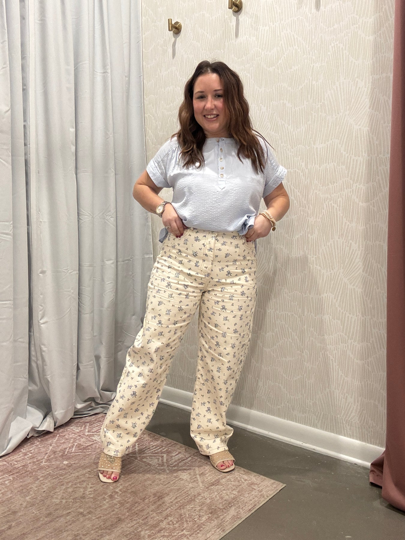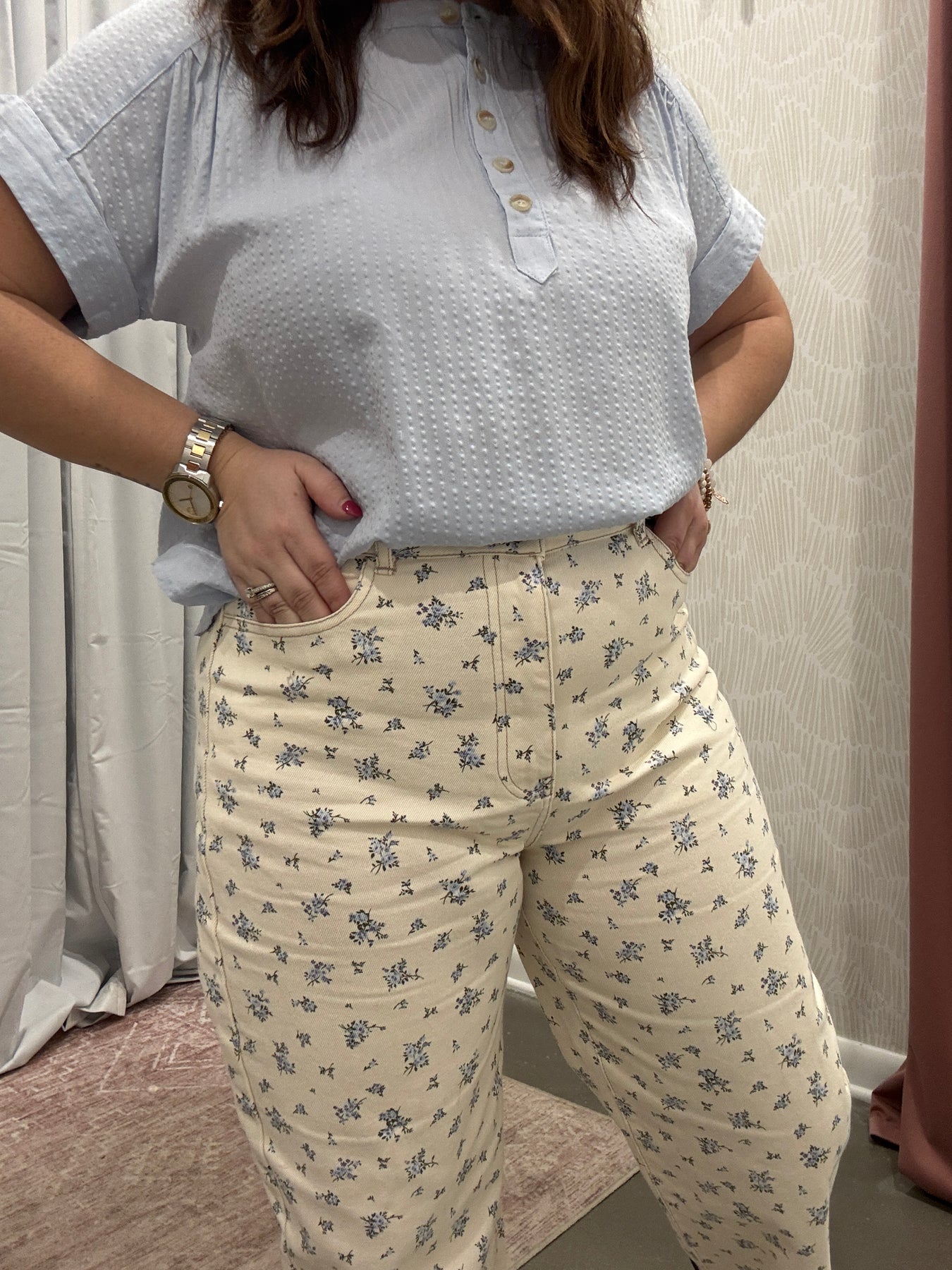 Pair these floral denim jeans with your favorite neutral blouse, a lightweight sweater, or a classic tee to create effortless, on-trend outfits. Designed for women who love a mix of timeless denim and playful patterns, these jeans are a wardrobe must-have for any fashion-forward closet.