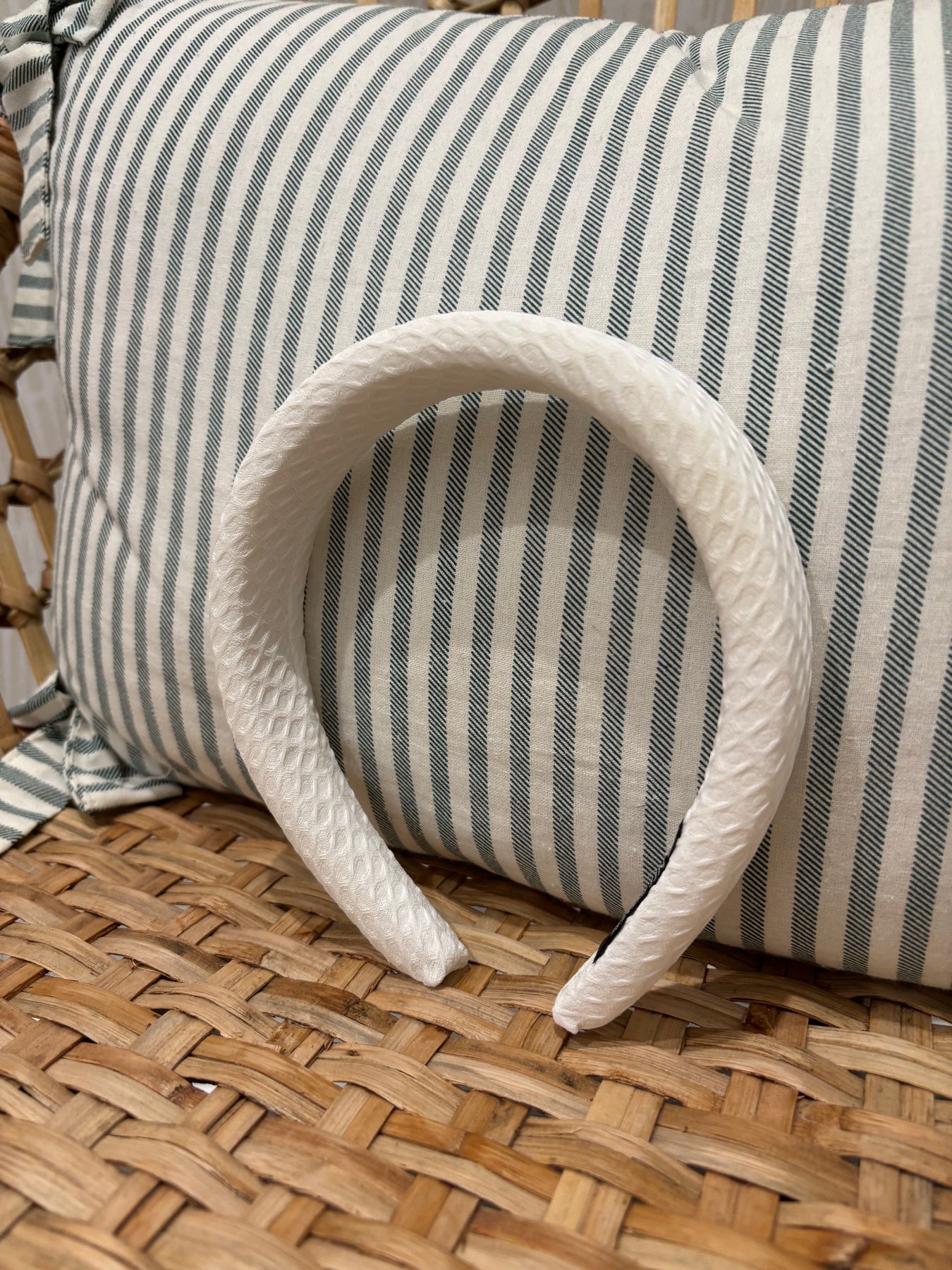 Handcrafted with soft fabric over a structured sponge base, this classic headband offers comfortable lift and subtle volume without feeling heavy. The padded design creates a flattering silhouette while staying secure for all-day wear.