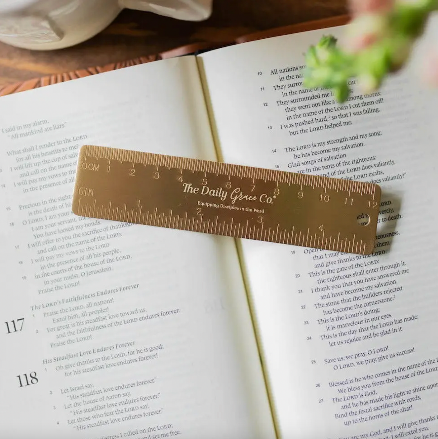 Measuring 4.5 inches, this brass ruler bookmark is perfect for Bible study, journaling, devotionals, or everyday reading. Use it as a straightedge for underlining scripture, or slip it between the pages to mark your place while reflecting on God’s promises.