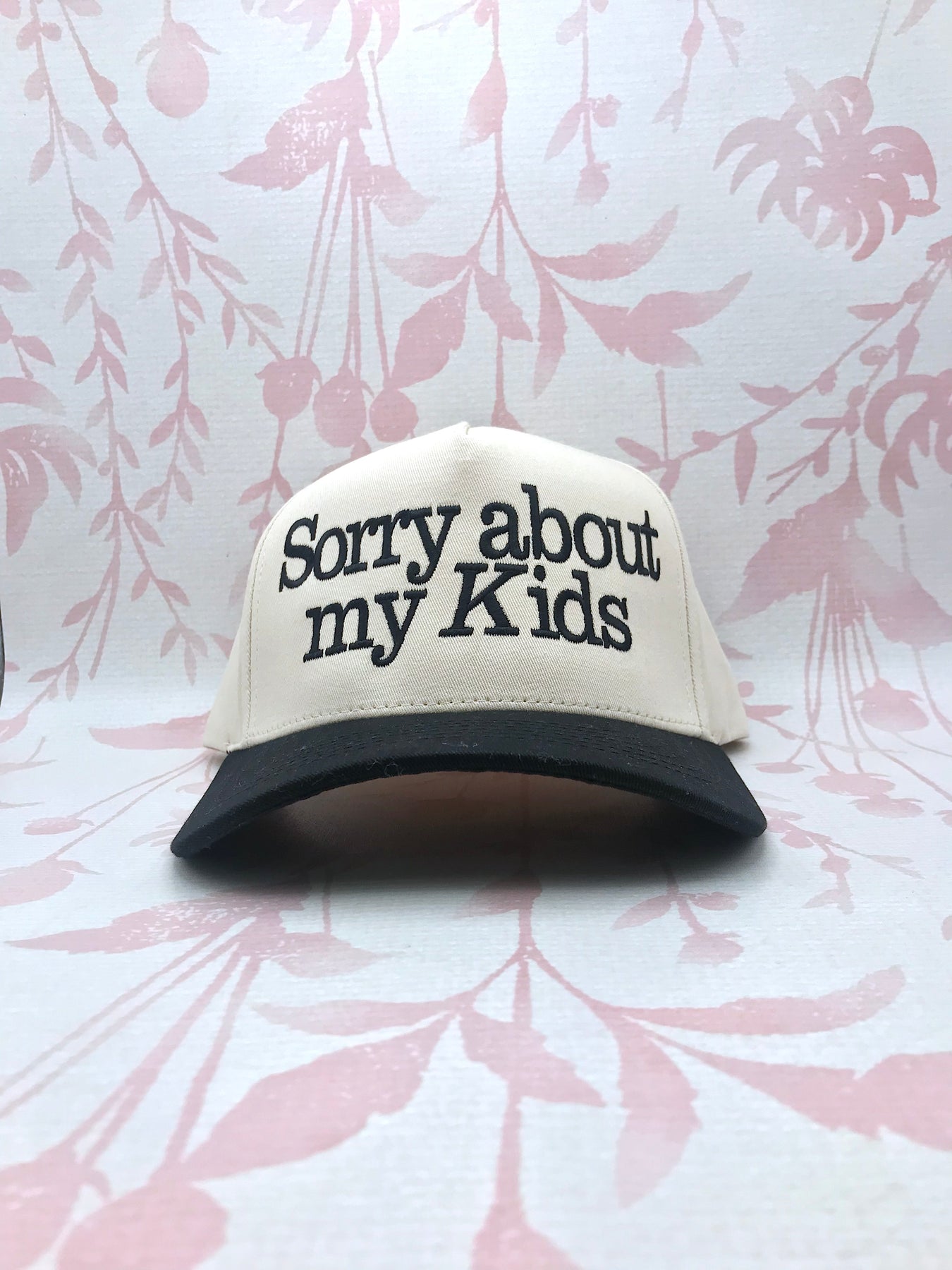 Keep it real and stylish with our Sorry About My Kids Hat. Designed without mesh for a smooth, classic look, this hat offers a comfortable fit for everyday wear. The playful embroidered “Sorry About My Kids” lettering adds humor and personality, perfect for busy moms who want to embrace the chaos with a smile. Whether you’re running errands, carpooling, or grabbing coffee, this hat is a fun, casual accessory that speaks your truth.