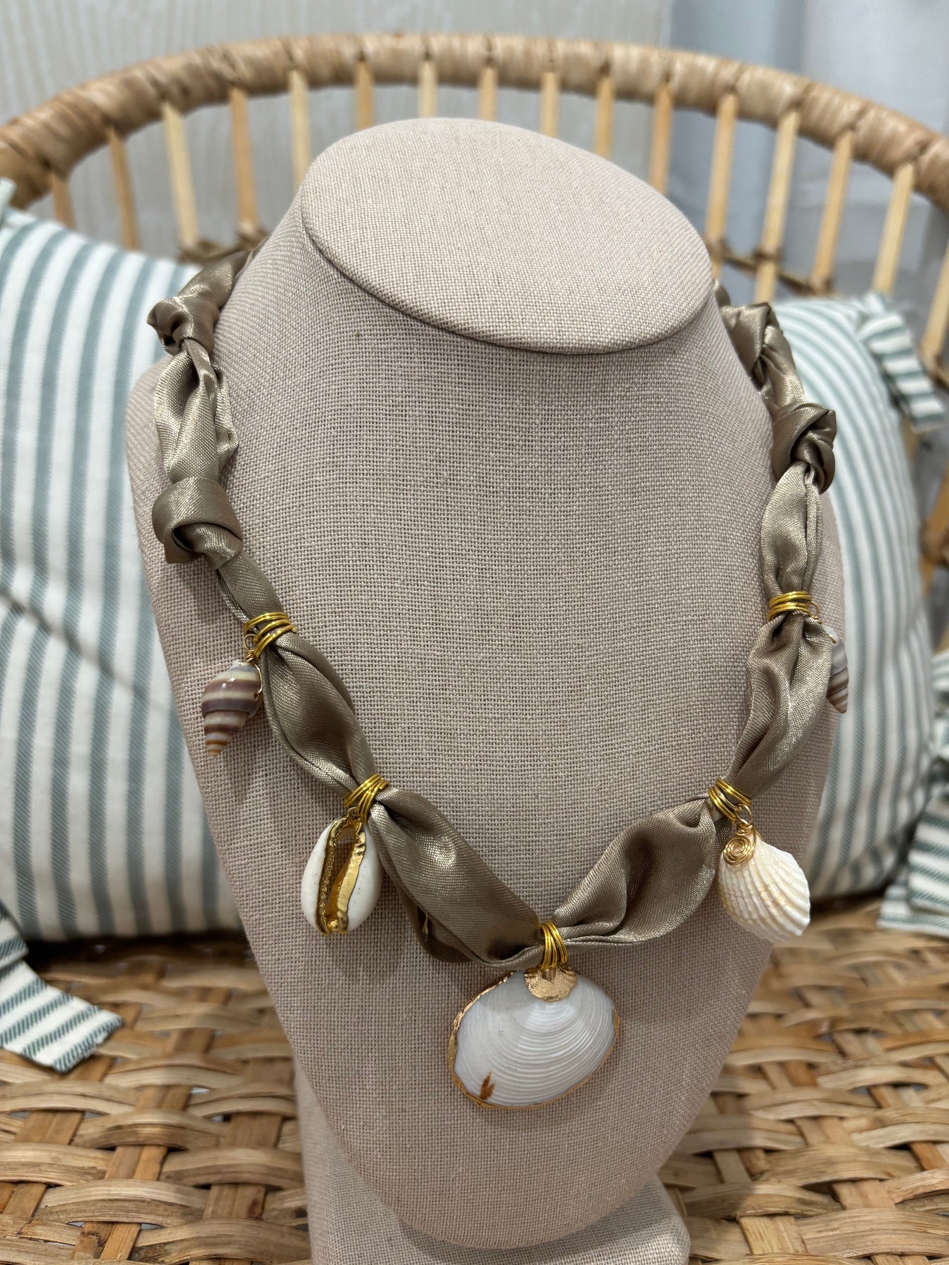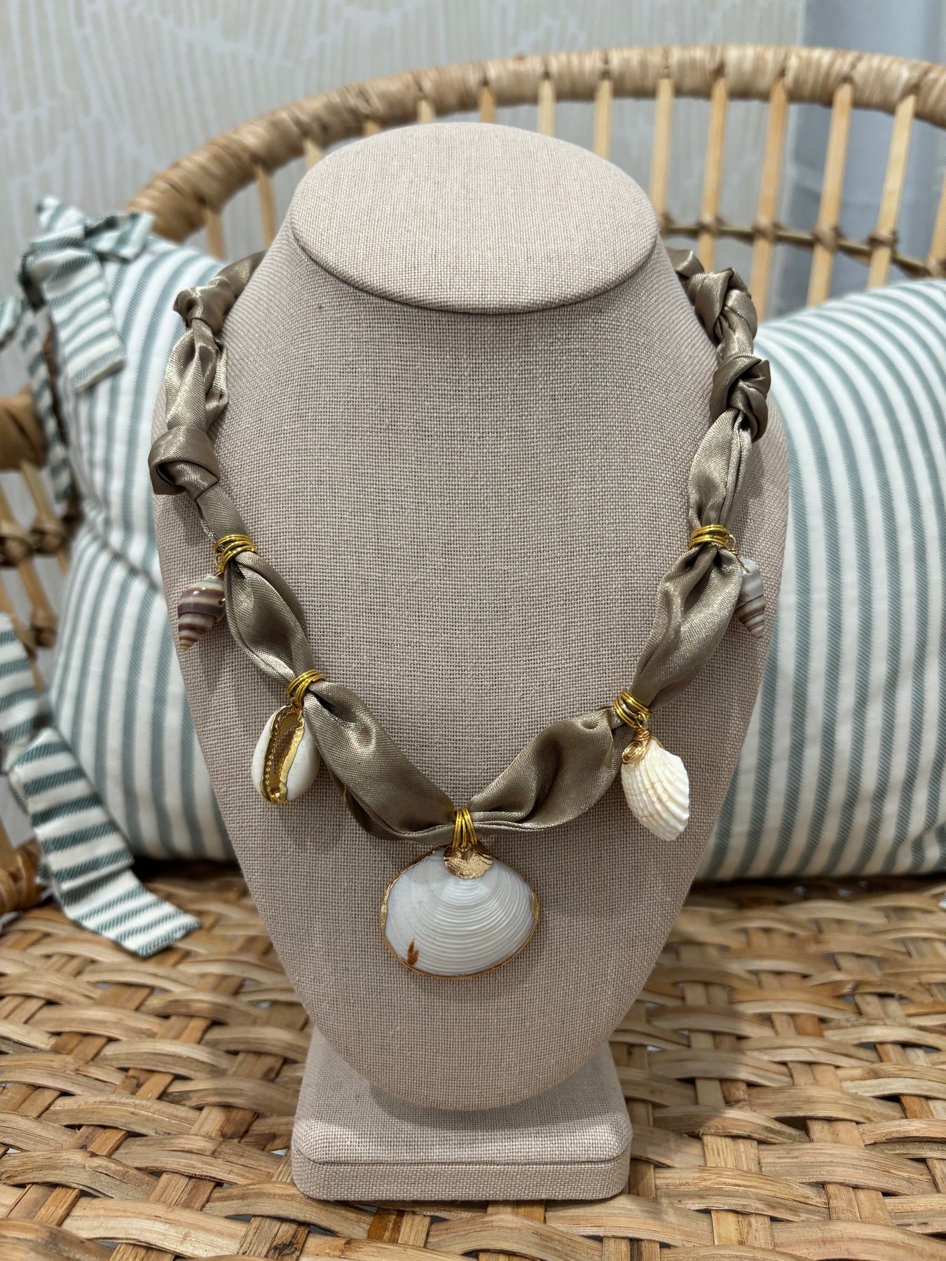 Scarf Charm Necklace | Brown Shells