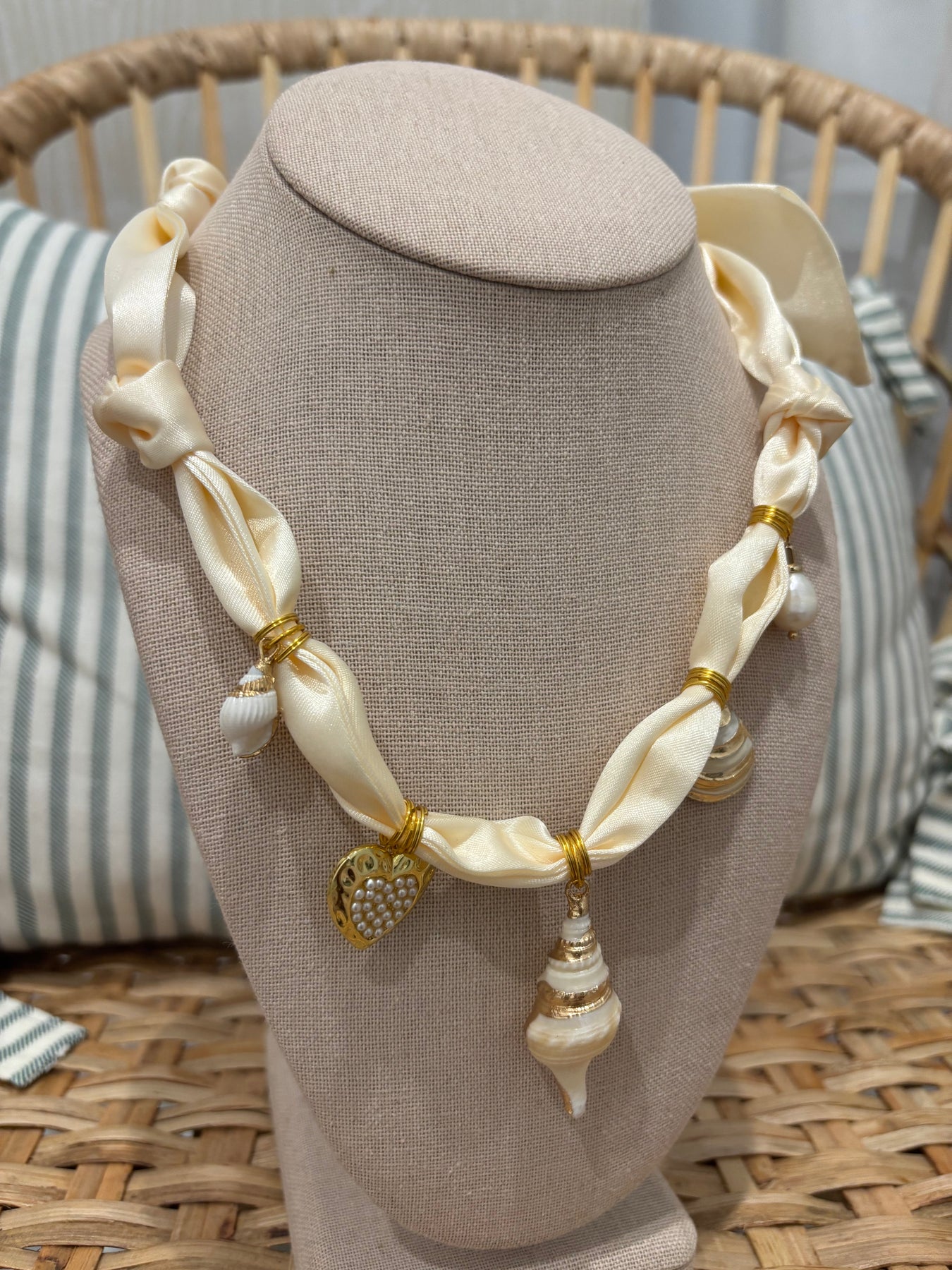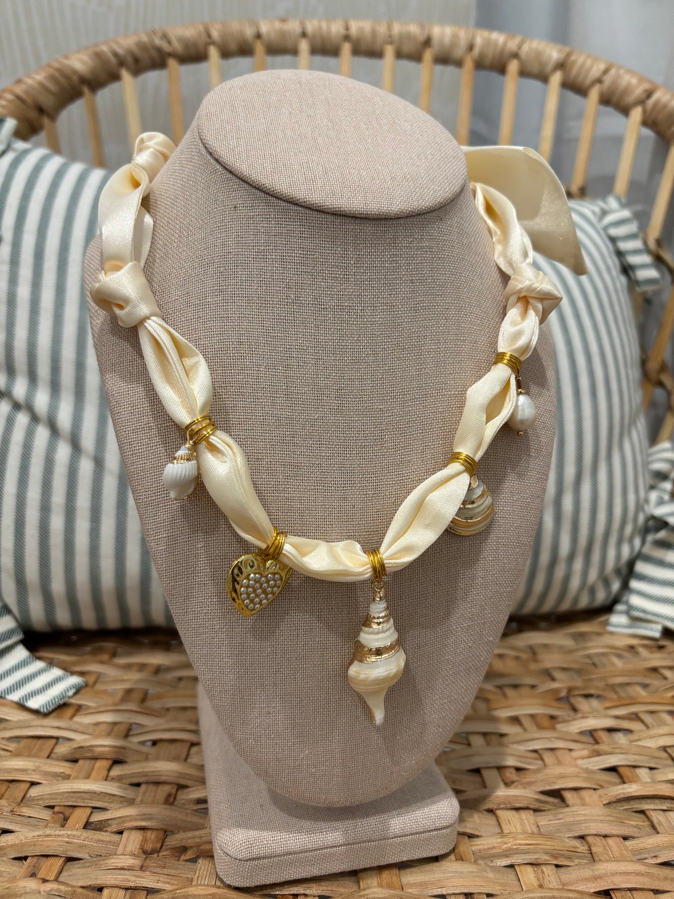 Scarf Charm Necklace | Cream Shells