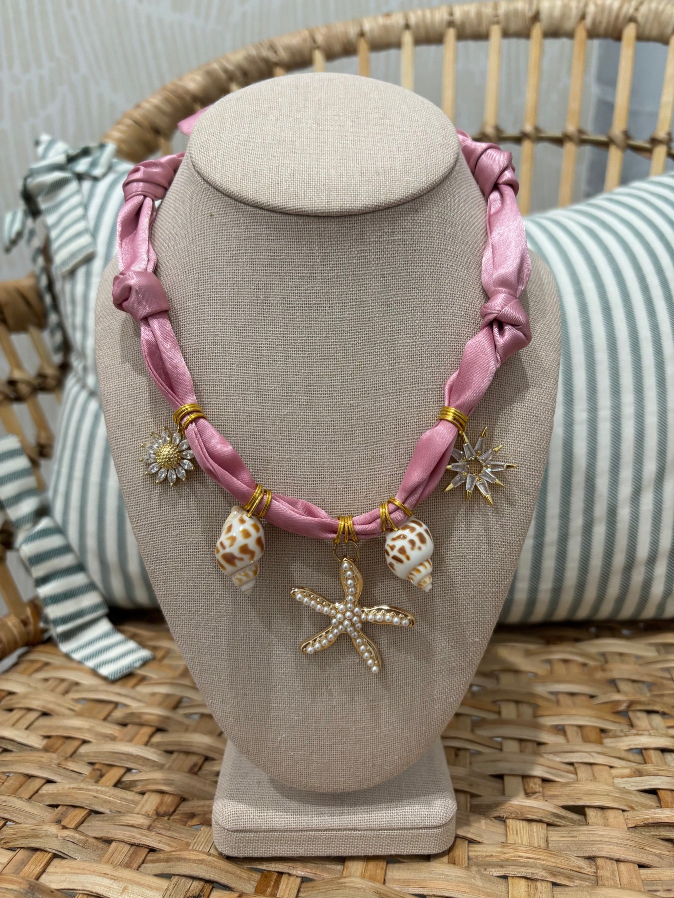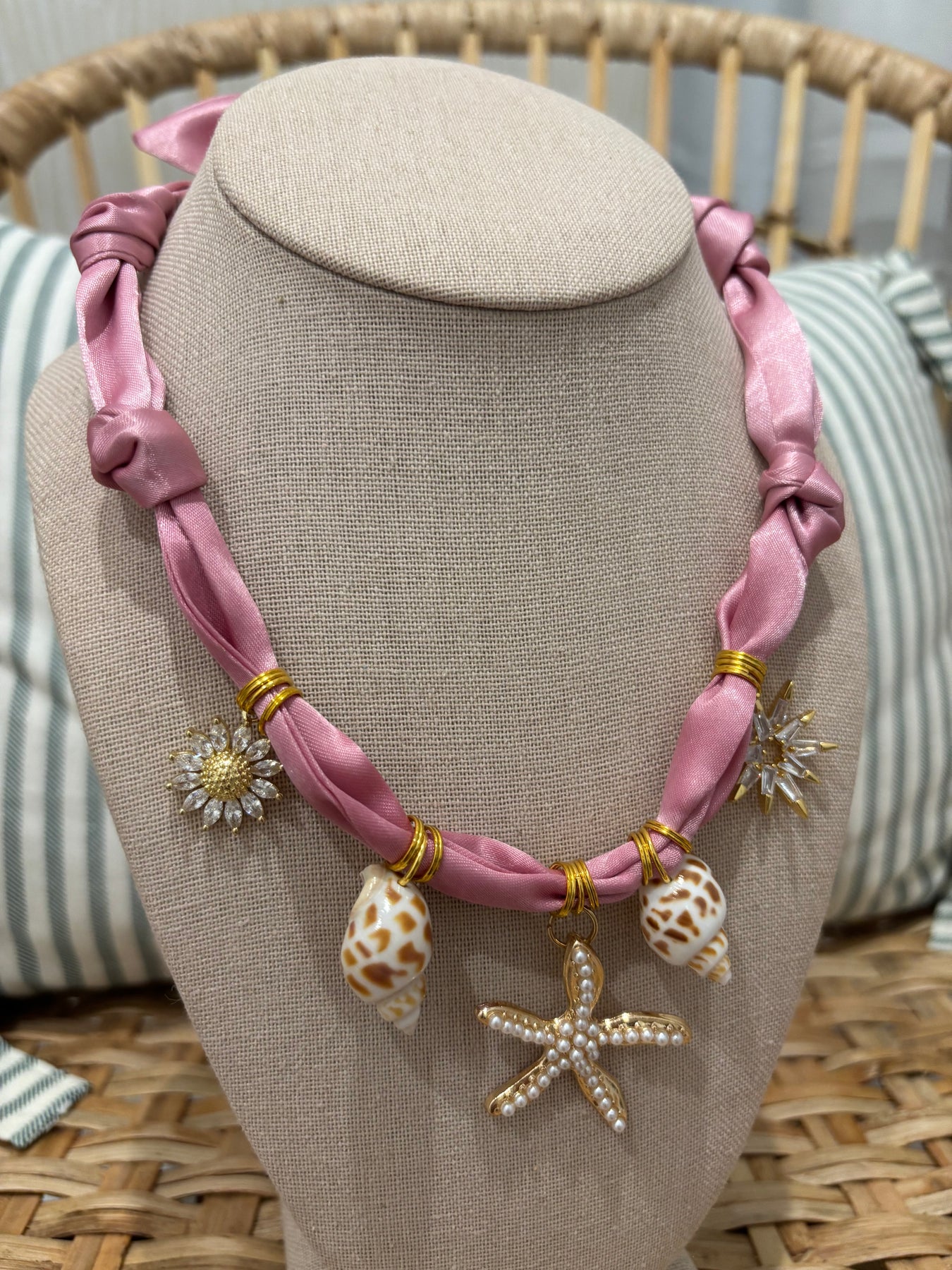 Scarf Charm Necklace | Pink Shells