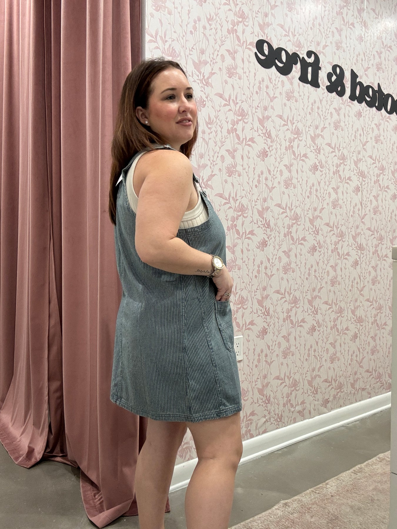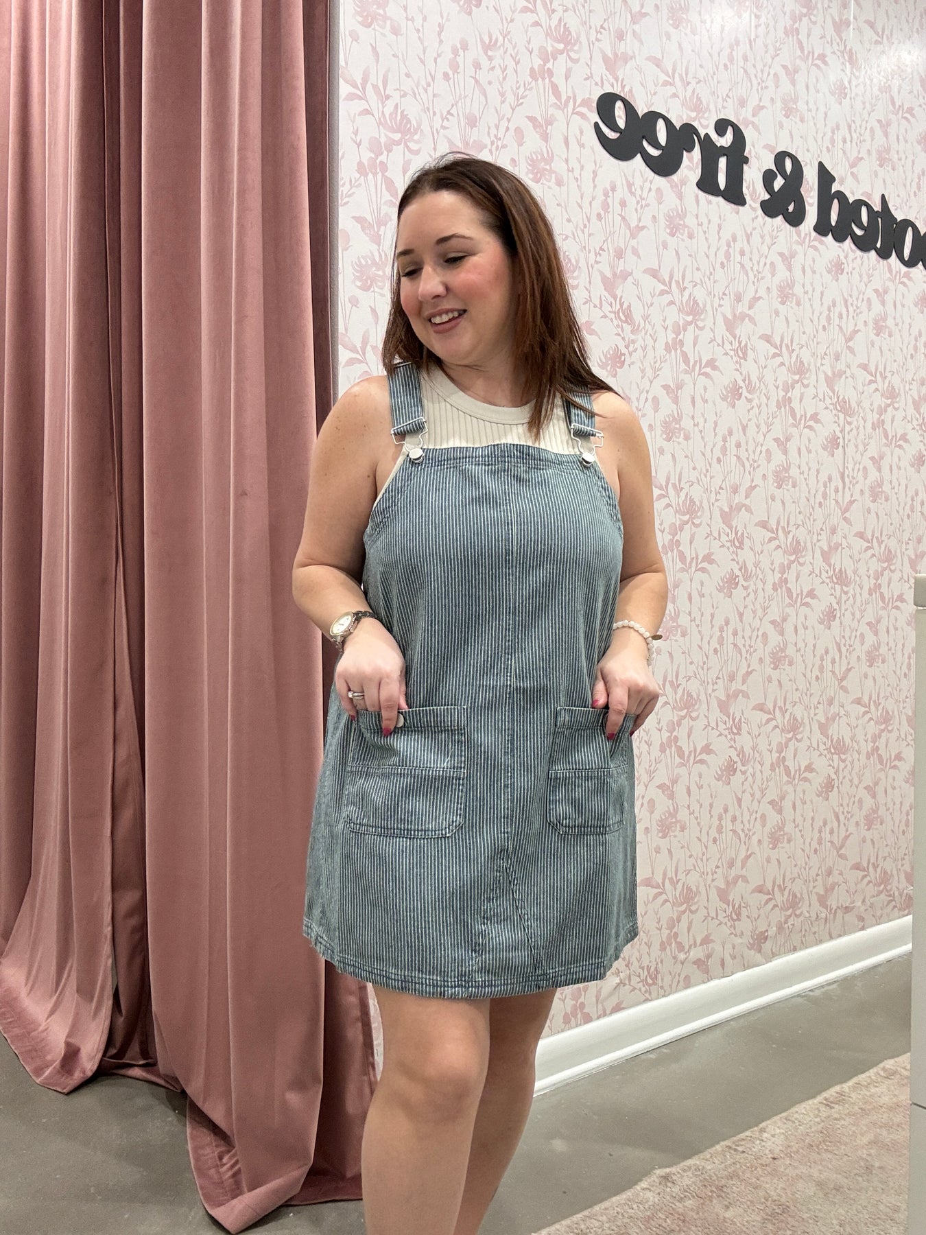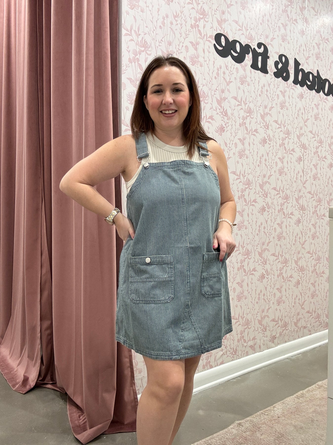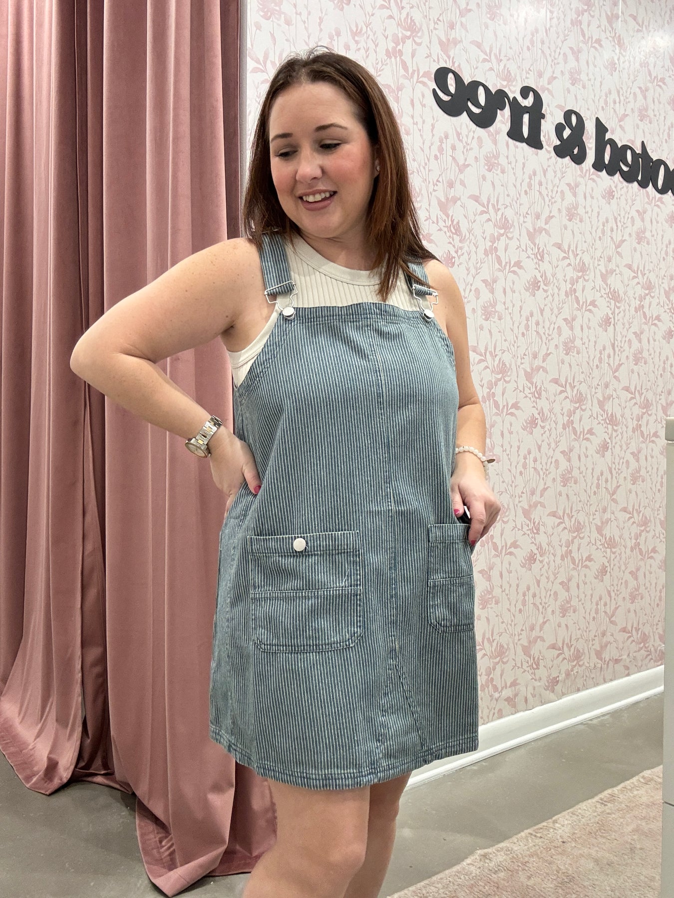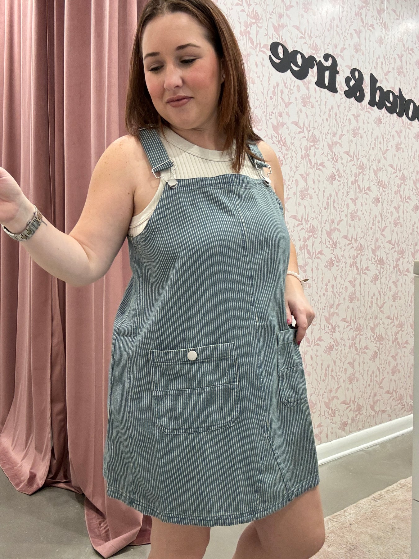 Playful, chic, and effortlessly versatile, the Stripe Overall Mini Dress is a fresh take on a classic silhouette. Designed with adjustable straps and a flattering mini length, this dress combines casual ease with standout style. The subtle stripe pattern adds visual interest, while the overall-inspired design keeps it fun and modern.