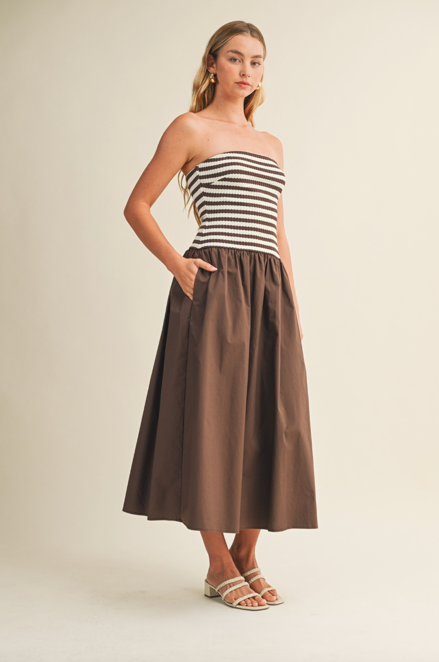 Effortless, chic, and endlessly versatile, this Striped Tube Dress is a must-have for easy, all-day style. Designed with a flattering, fitted tube silhouette, it highlights your shape while remaining comfortable and breathable. The classic stripe pattern adds visual interest, making it a standout piece that’s perfect for a variety of occasions.
