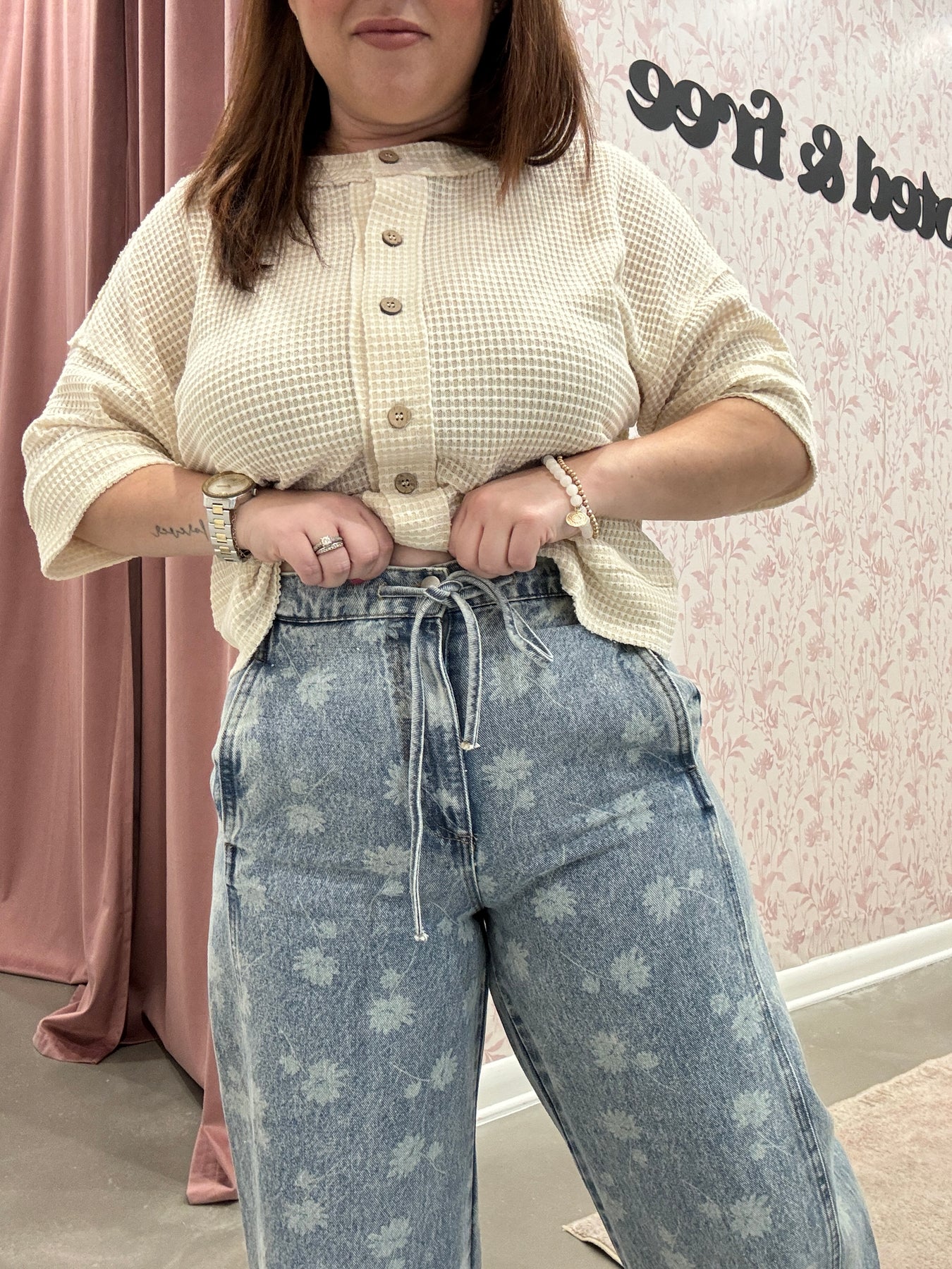 Casual, comfortable, and effortlessly stylish, the Dandelion Washed Denim Drawstring Detail Jeans are a modern wardrobe essential. Designed with a relaxed fit, soft washed denim, and an adjustable drawstring waist, they offer all-day comfort without sacrificing style. The subtle washed detailing adds a lived-in, easygoing vibe that pairs perfectly with a variety of tops.