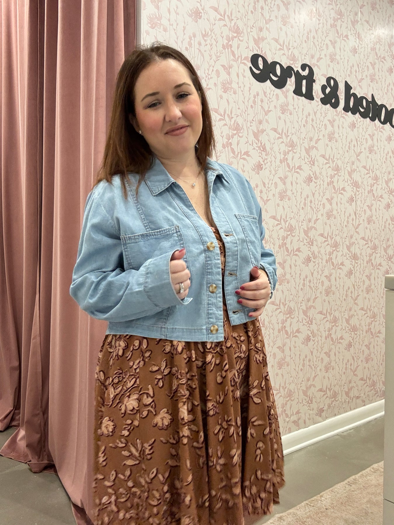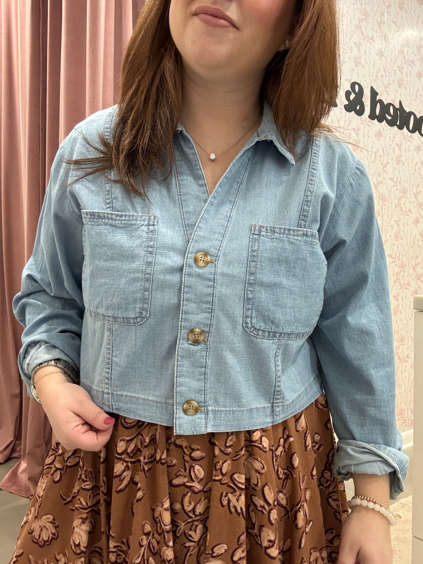 Casual, chic, and effortlessly on-trend, the Washed Denim Button Down Cropped Top is a versatile wardrobe essential. Crafted from soft washed denim, it features a flattering cropped silhouette and classic button-down design, making it perfect for layering or wearing on its own. The relaxed fit and structured style strike the perfect balance between comfort and polished casual style.