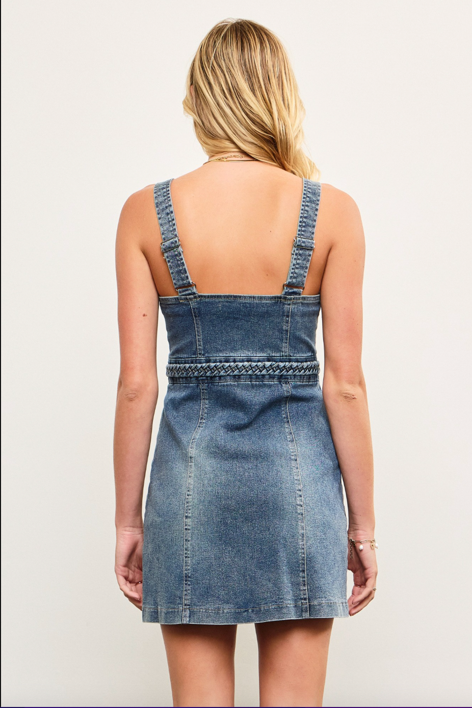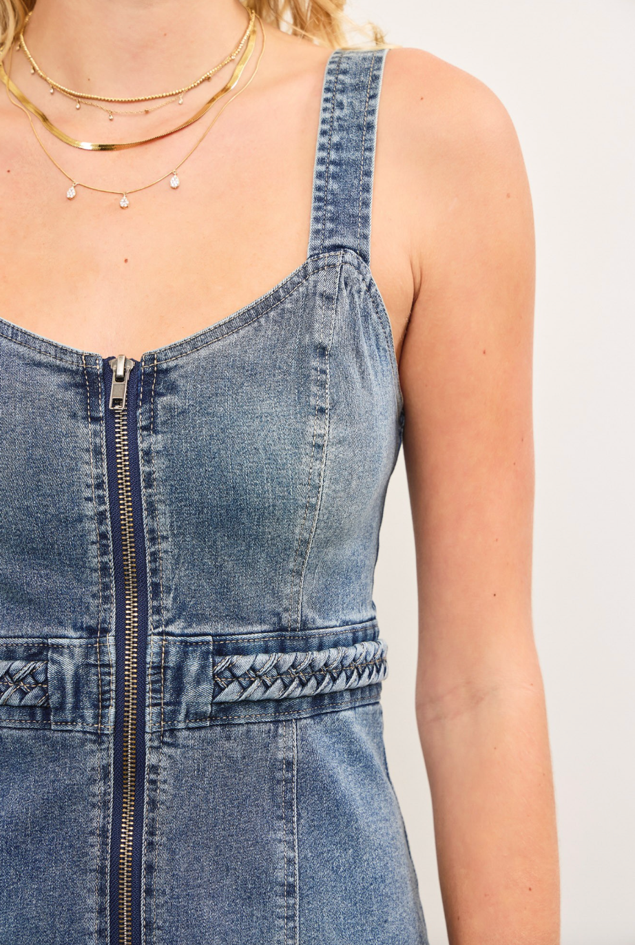 Add effortless style to your wardrobe with this braided waist sleeveless denim top. The lightweight denim fabric keeps it cool and comfortable, while the braided waist detail creates a flattering, cinched-in silhouette that’s both playful and polished. Sleeveless and breezy, this top is perfect for layering or wearing on its own for sunny days.