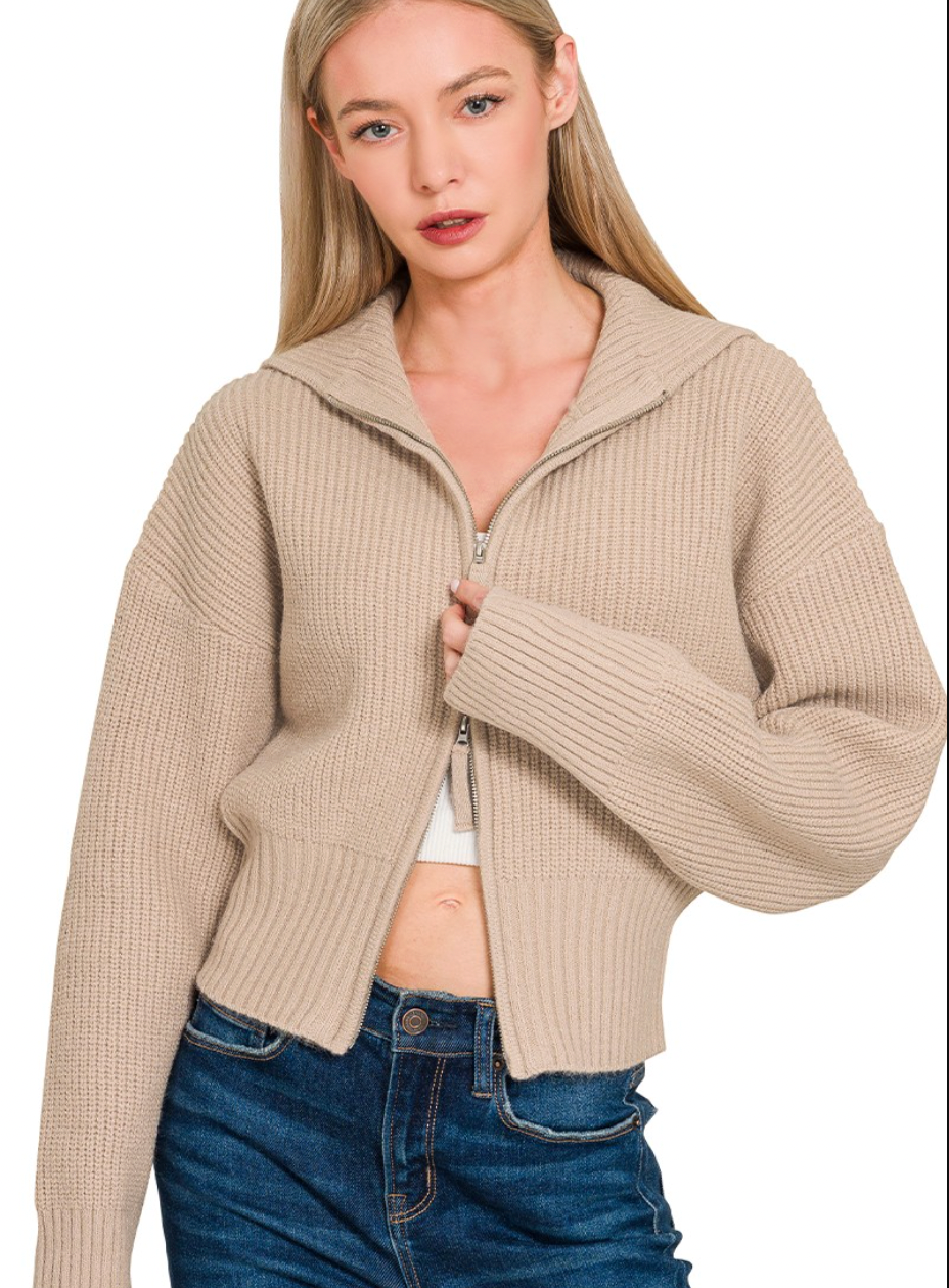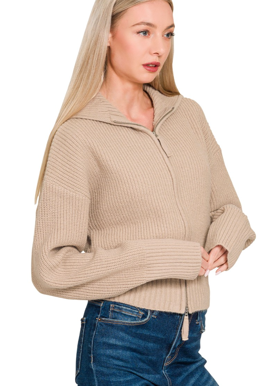 Stay cozy and polished with this collared zip-up sweater, a versatile layering piece for any wardrobe. Featuring a classic collar and a convenient front zipper, this sweater offers both style and functionality, making it easy to wear over casual tees or dressed-up tops.