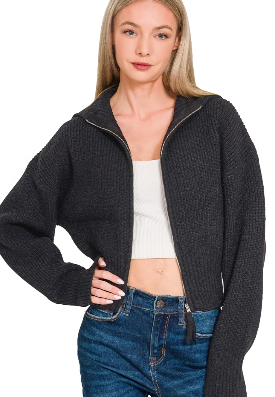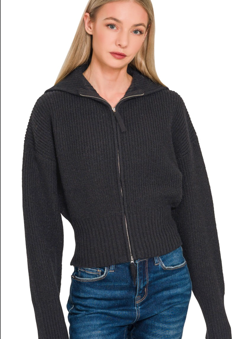 Stay cozy and polished with this collared zip-up sweater, a versatile layering piece for any wardrobe. Featuring a classic collar and a convenient front zipper, this sweater offers both style and functionality, making it easy to wear over casual tees or dressed-up tops.