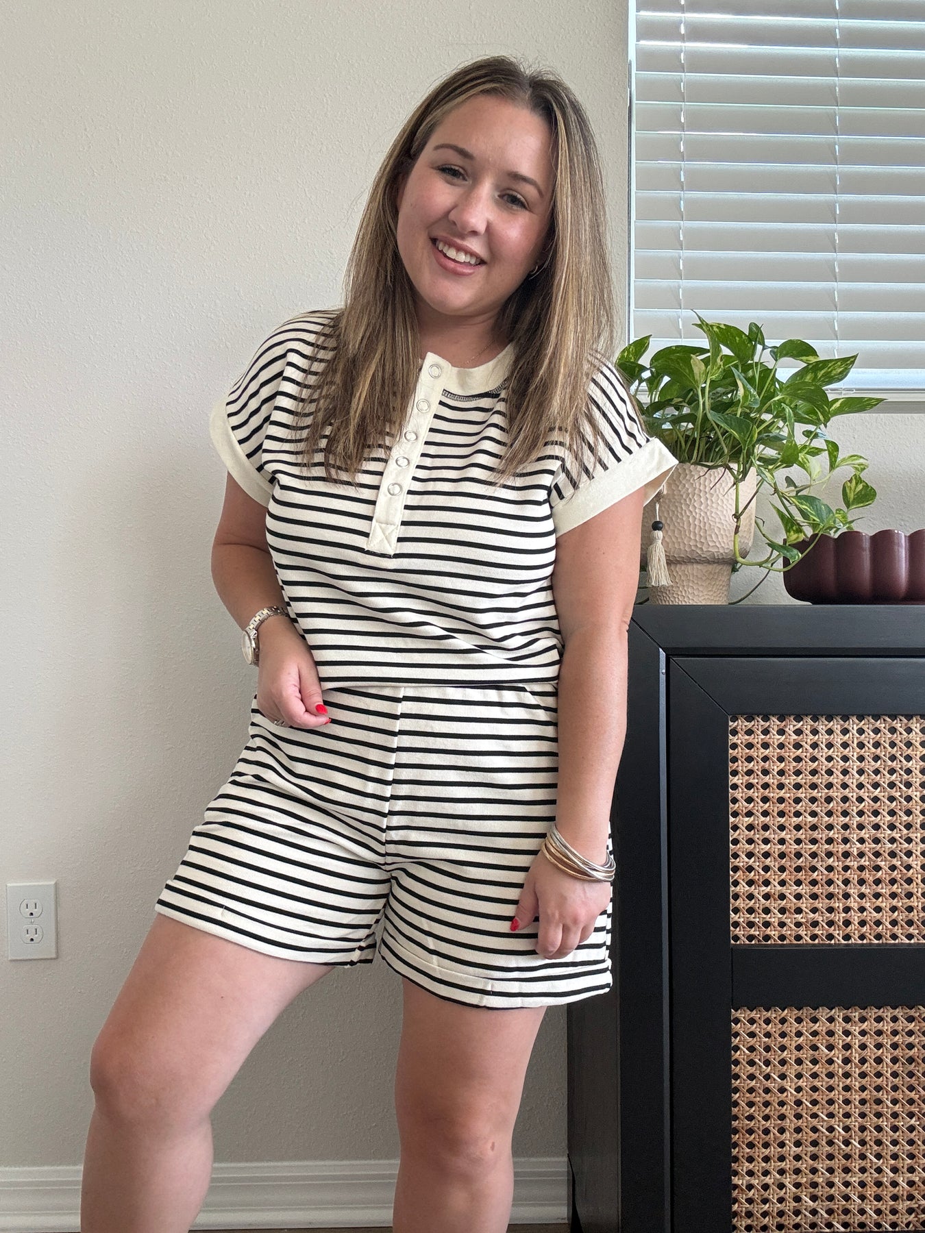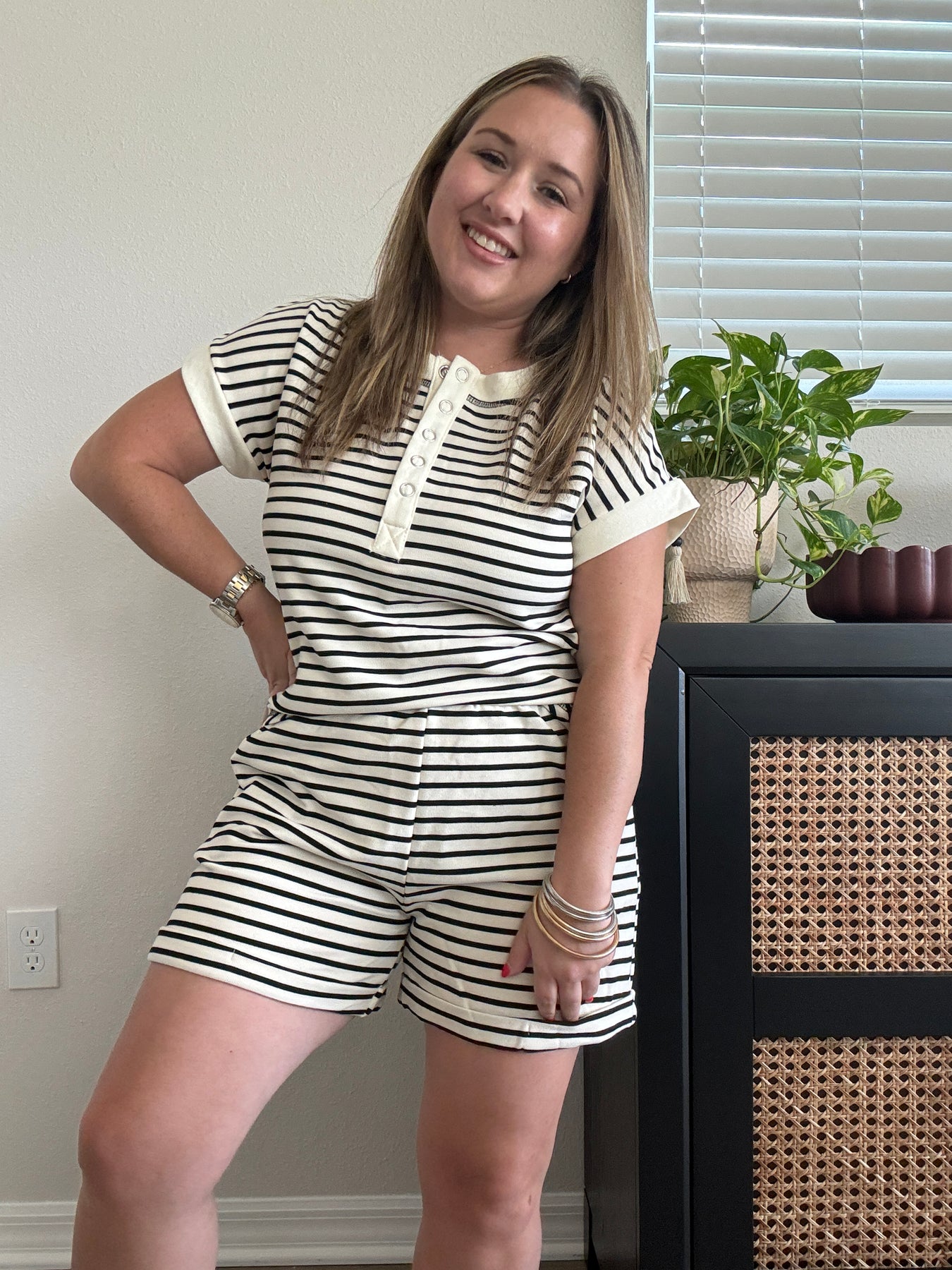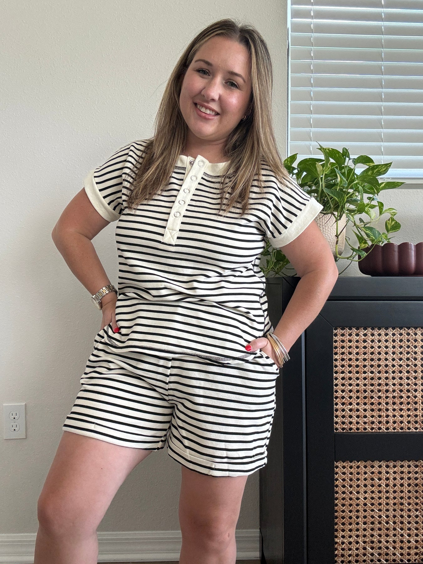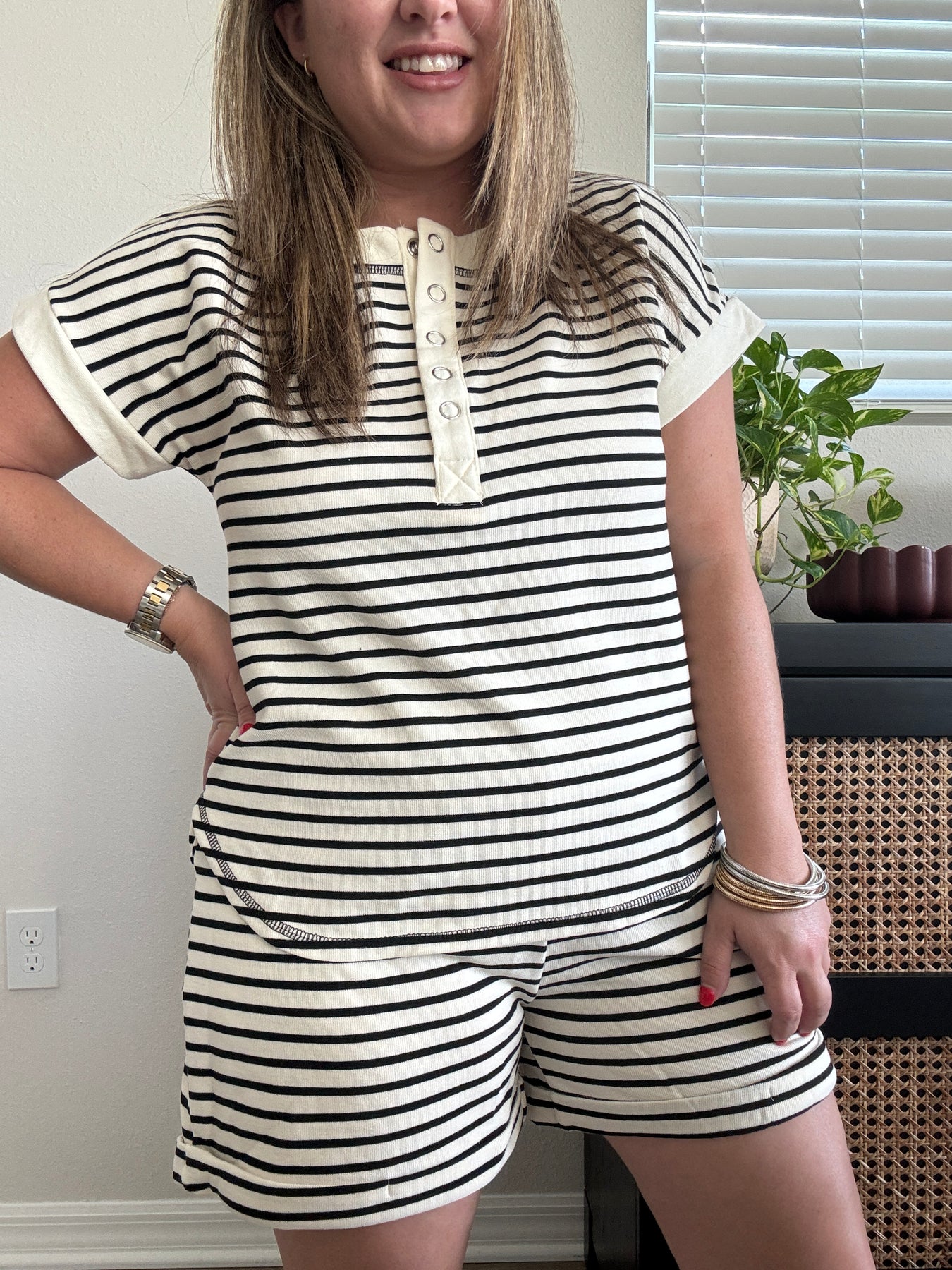 This short sleeve knit top brings an easy mix of comfort and style with its Henley neckline, half snap button detail, and flattering U hemline. The subtle contrast trim adds a polished touch, making it just as perfect for lounging as it is for stepping out.