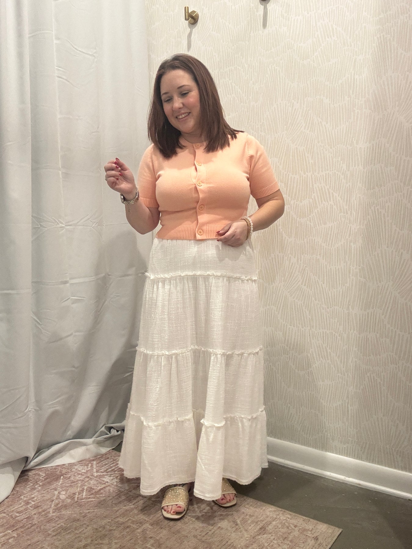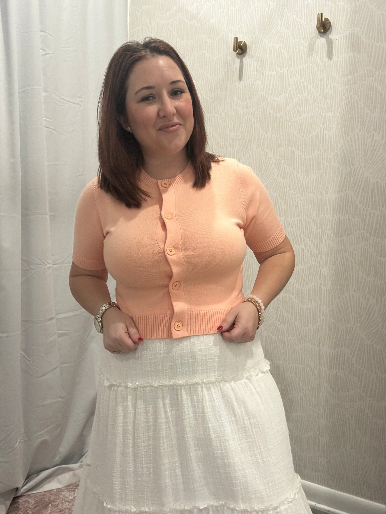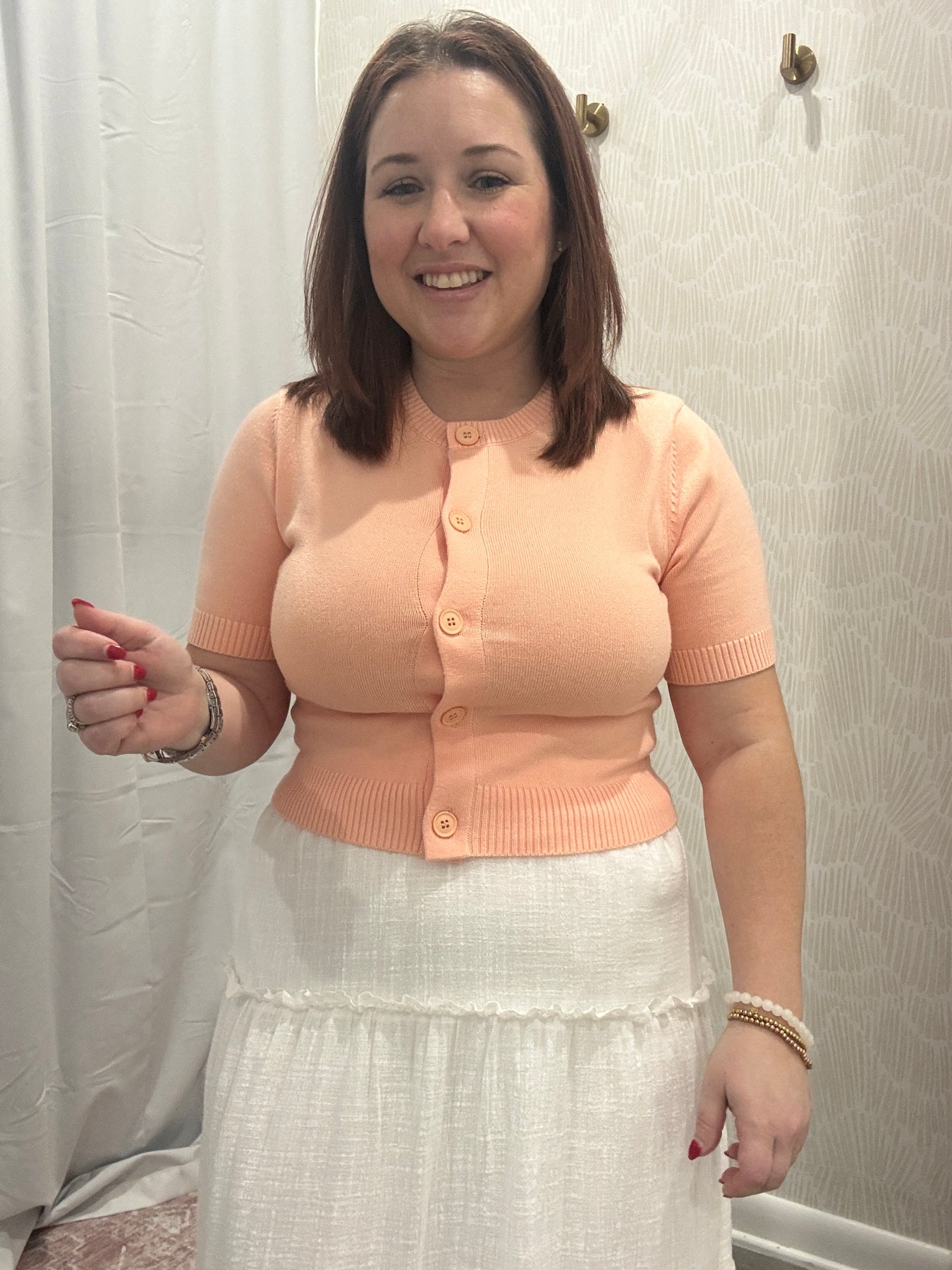 The Isabella Button Down Cropped Cardigan is the perfect layering piece for effortless, everyday style. Designed with a flattering cropped length and classic button front, it adds a polished touch to any outfit while keeping your look soft and feminine. The lightweight knit fabric offers comfortable stretch and an easy fit that layers beautifully over tanks, dresses, or tees.