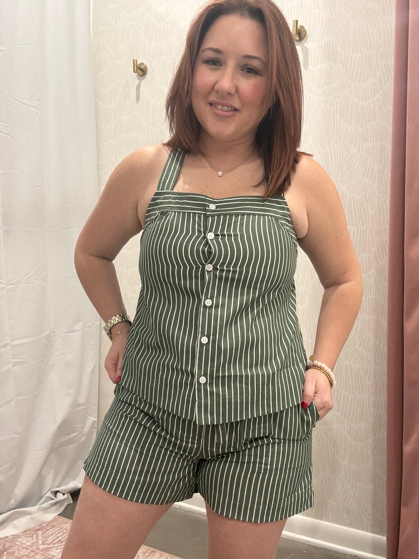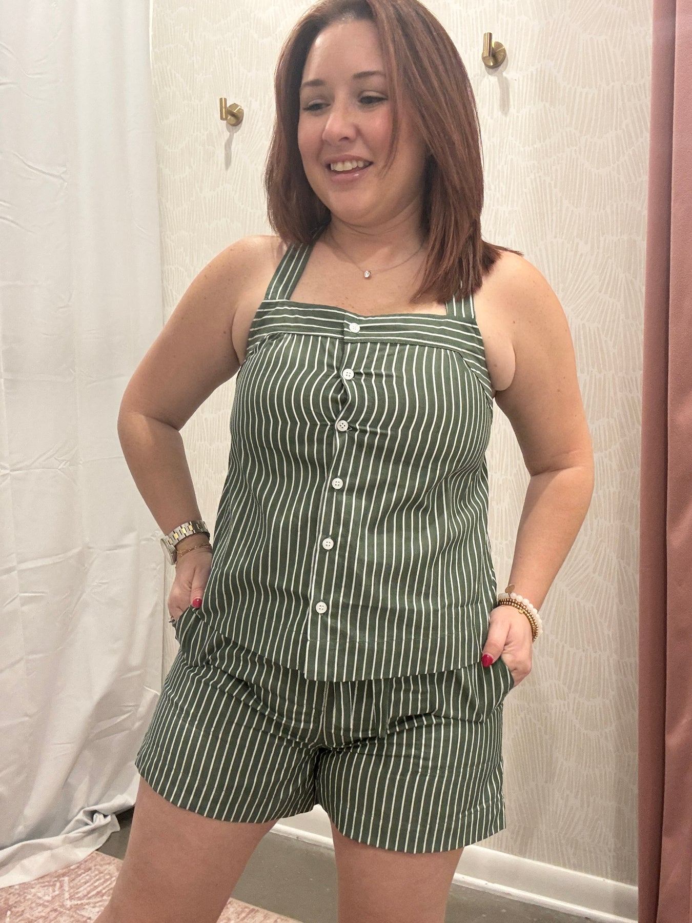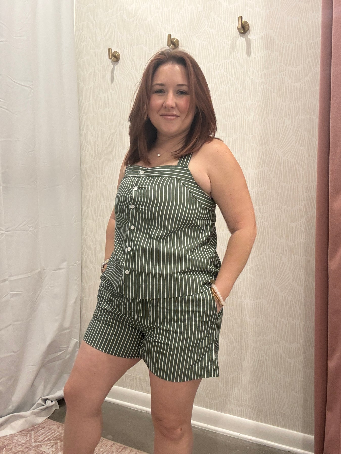 The Lucille Striped Drawstring Shorts are a casual essential designed for comfort and effortless style. Featuring an elastic waistband with an adjustable drawstring, they provide a flexible, customizable fit while the lightweight striped cotton fabric keeps you cool and comfortable. Side pockets add practicality, making these shorts perfect for everyday wear, weekend errands, or relaxed summer outings.