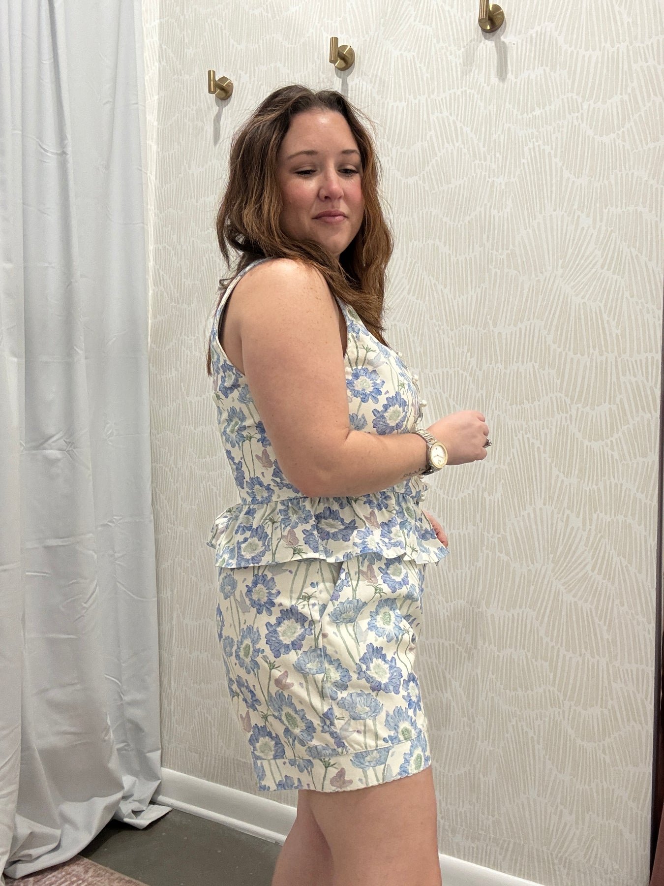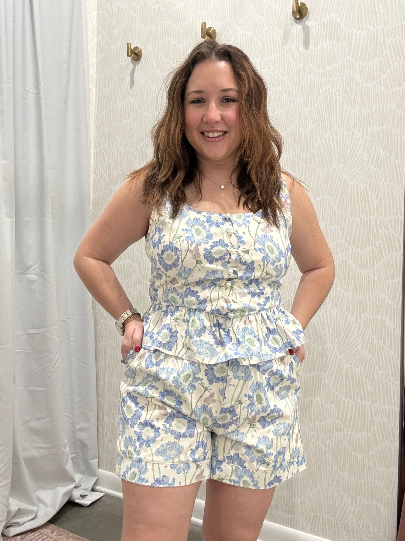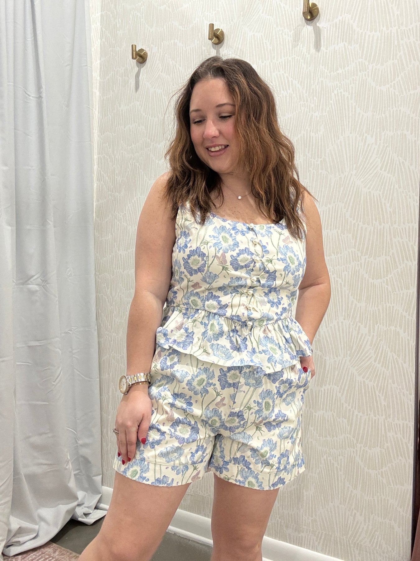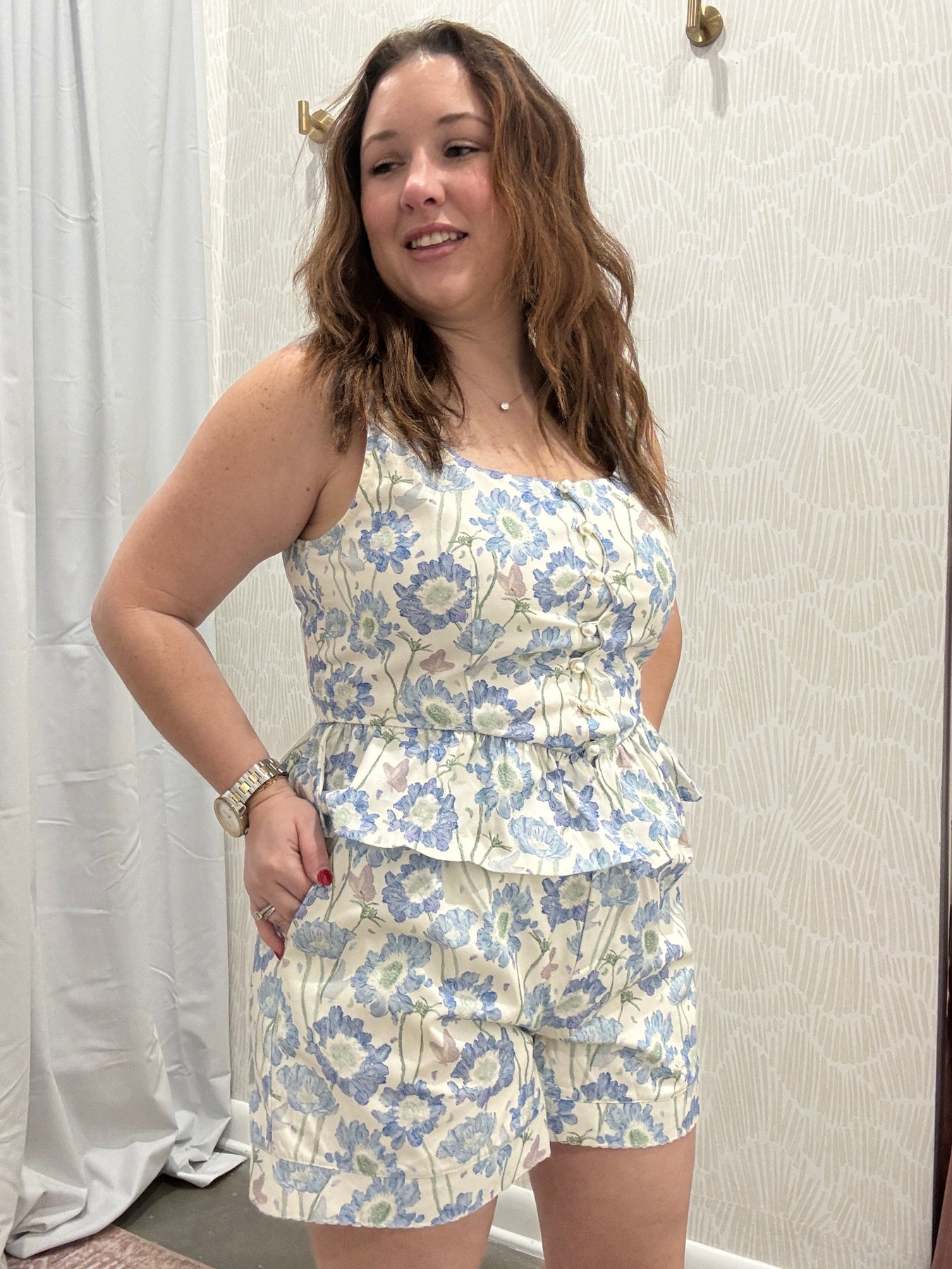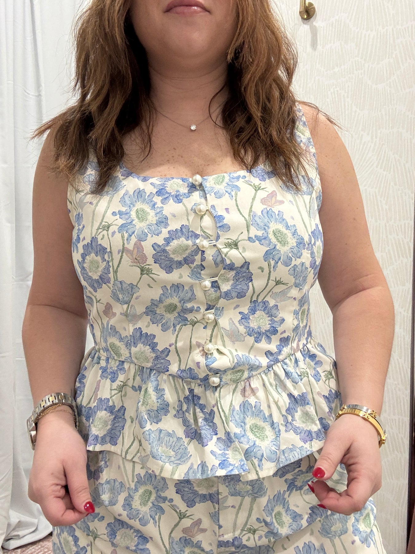 Pair this floral ruffle hem top with denim for a casual daytime outfit or dress it up with tailored shorts or trousers for brunch, work, or special plans. It’s a versatile piece that blends charm, comfort, and timeless style.