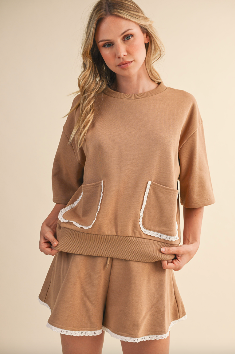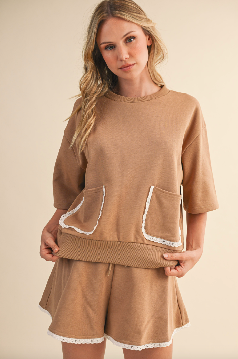 Pair it with the matching shorts for a coordinated look, or mix and match with jeans, skirts, or tailored trousers for a variety of stylish outfits. Light, airy, and effortlessly chic, this top is ready to become a versatile staple in your wardrobe.