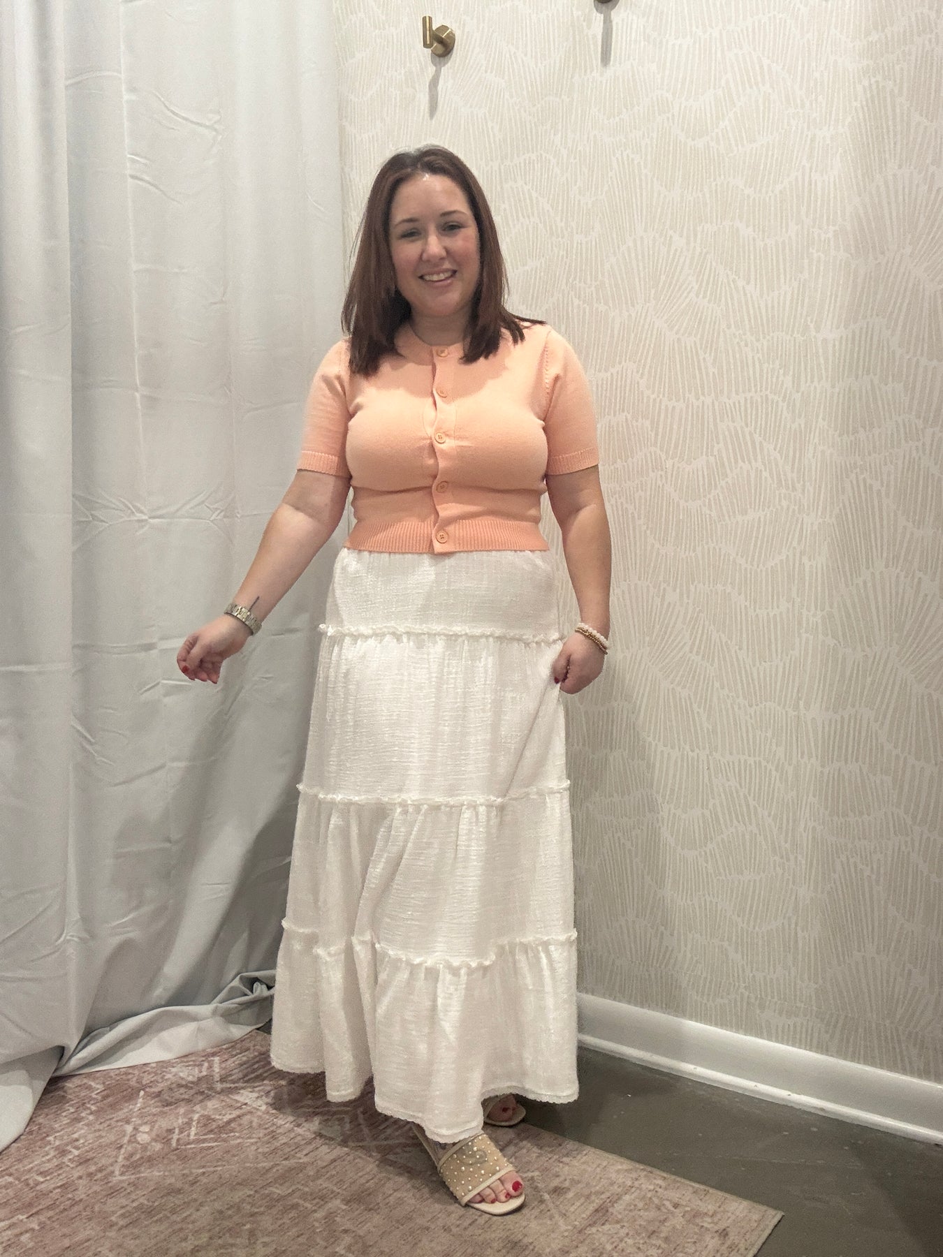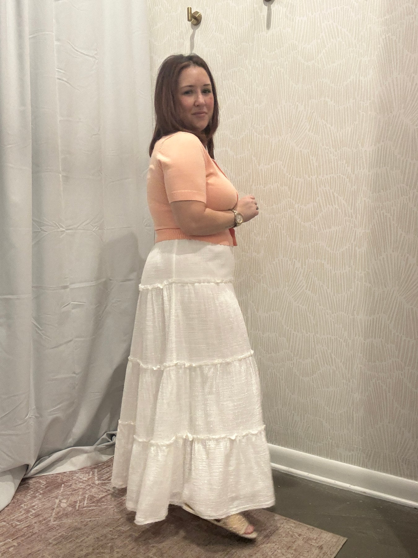 Perfect for dressing up or down, this versatile tiered maxi skirt pairs seamlessly with tanks, sweaters, or blouses for everyday wear, church, work, or weekend plans. Comfortable, timeless, and easy to style, the Brooke Maxi Skirt is a piece you will reach for again and again.