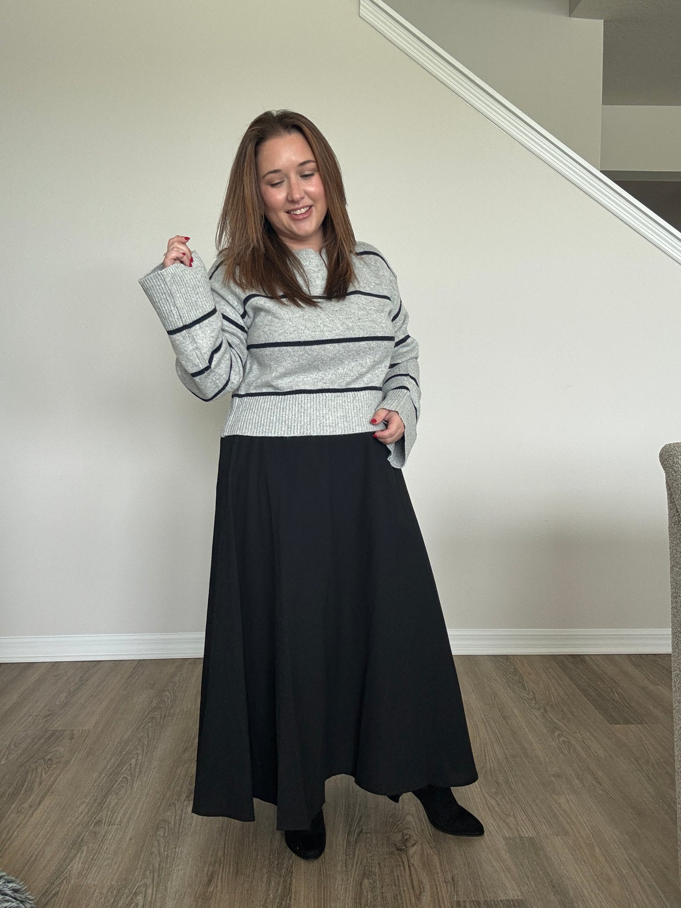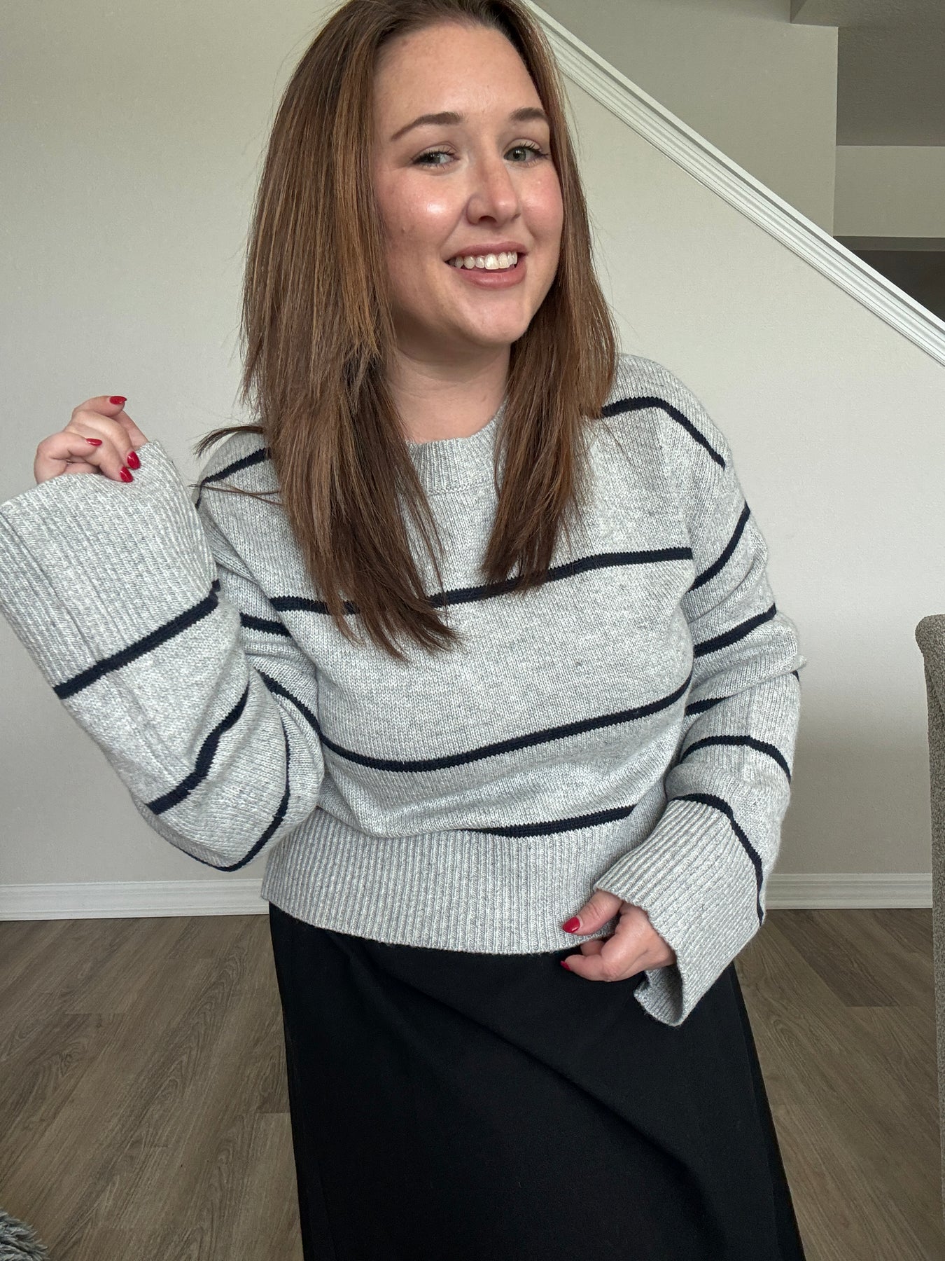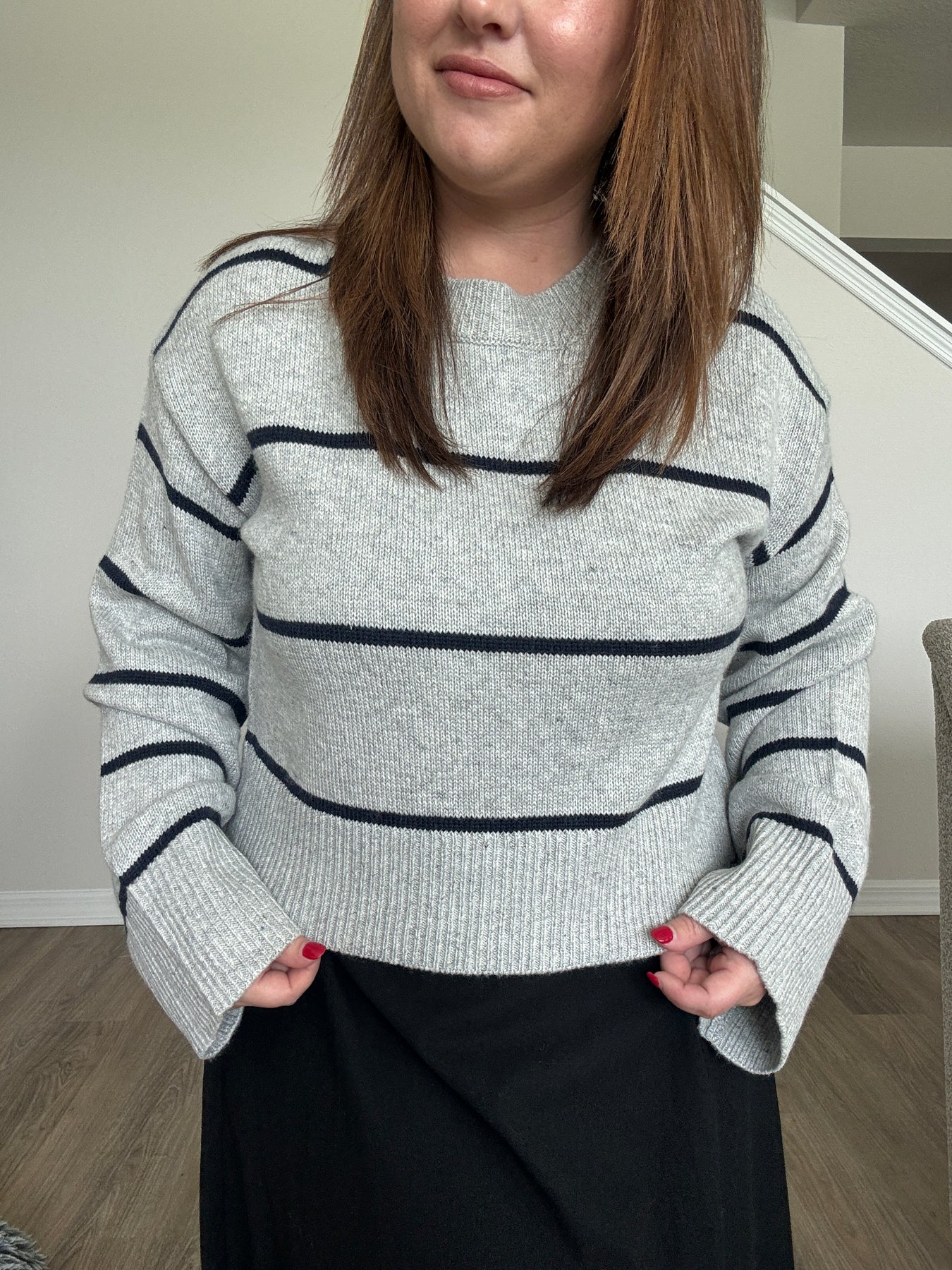 Effortlessly chic and endlessly versatile, this Cropped Boxy Ribbed Sweater is the perfect addition to any wardrobe. Featuring a relaxed, boxy silhouette, wide sleeves, and ribbed trim, it strikes the ideal balance between comfort and style. The classic crewneck and long sleeves make it easy to layer or wear on its own, giving you a polished, put-together look with minimal effort.