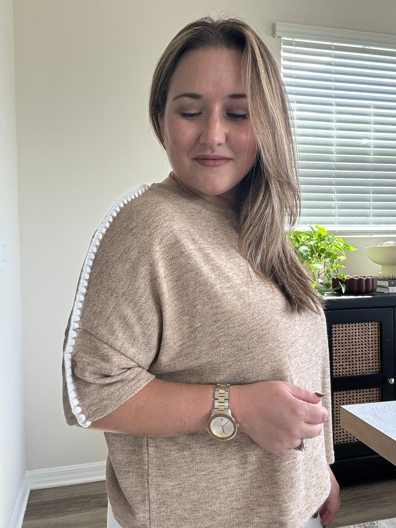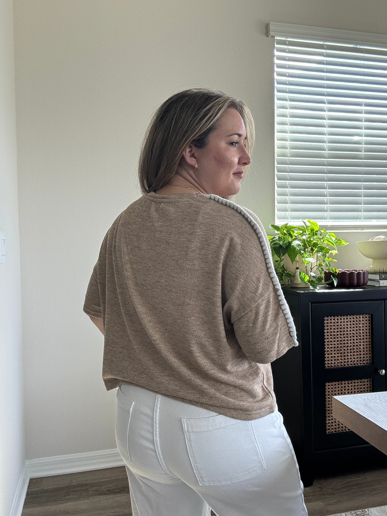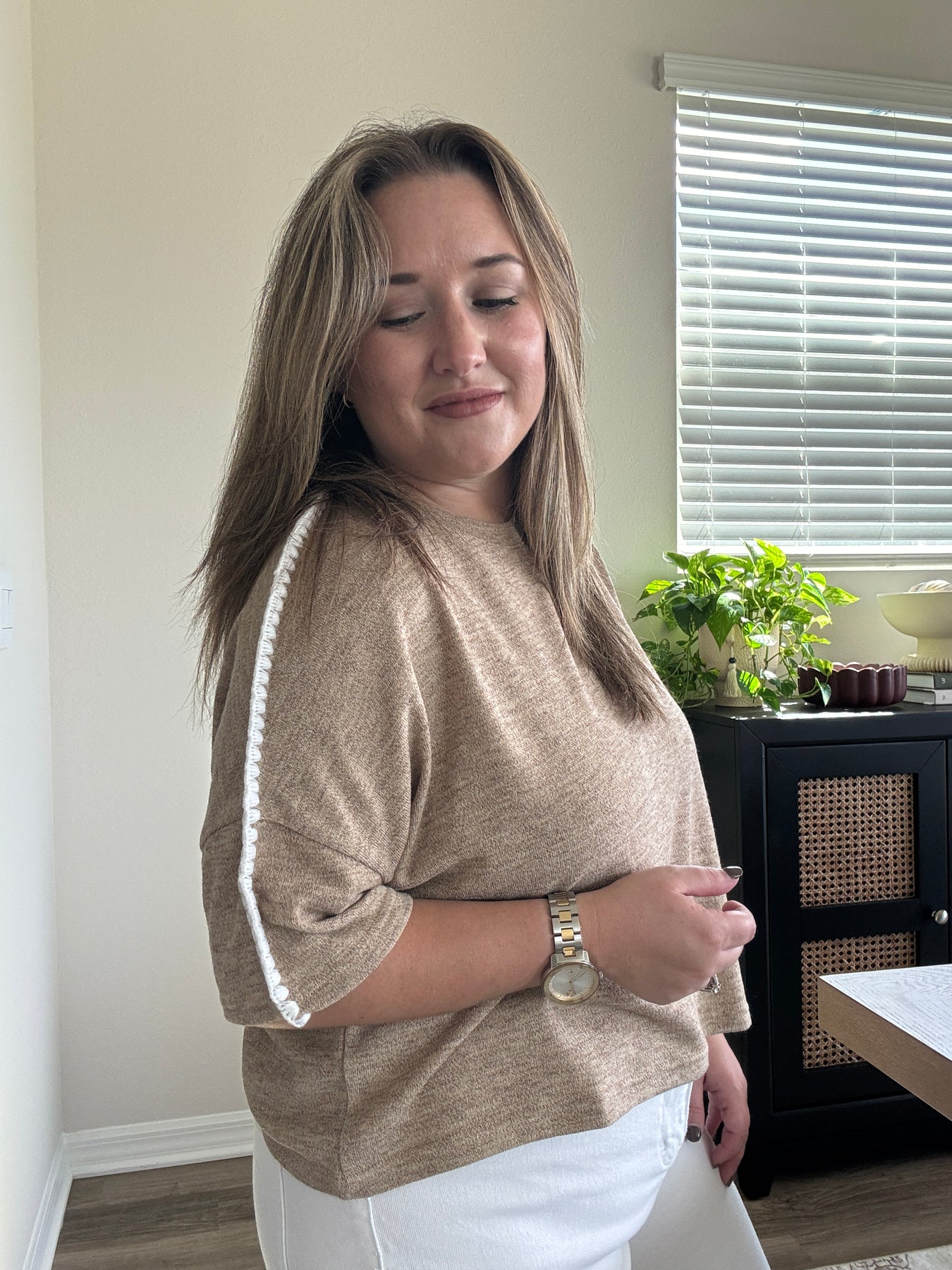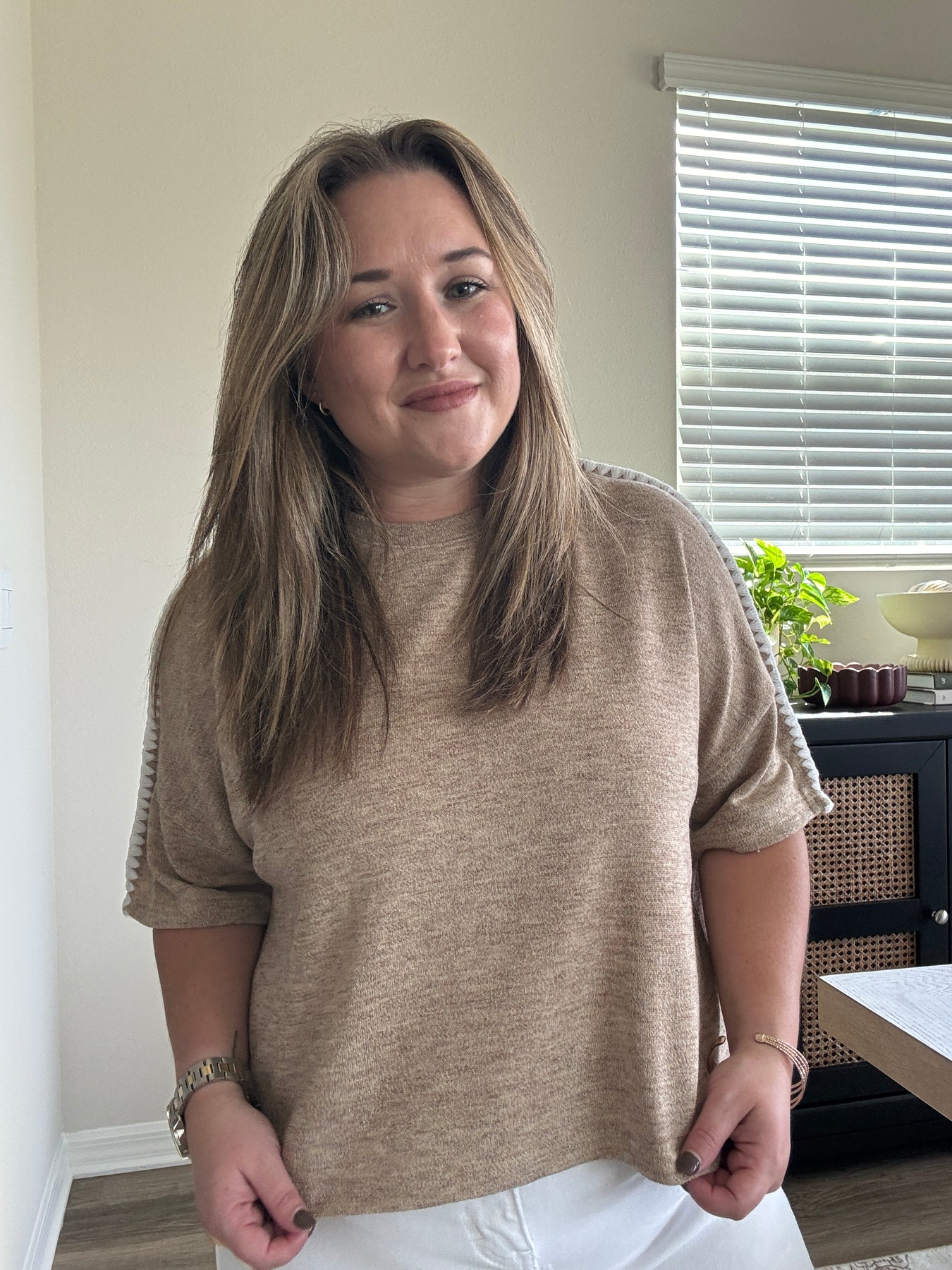 Crafted from a soft, breathable knit fabric, it’s perfect for pairing with your favorite denim, trousers, or casual skirts. Whether you’re dressing it up for brunch or keeping it casual for a day on the go, this top delivers that easy, confident style you’ll want to wear on repeat.